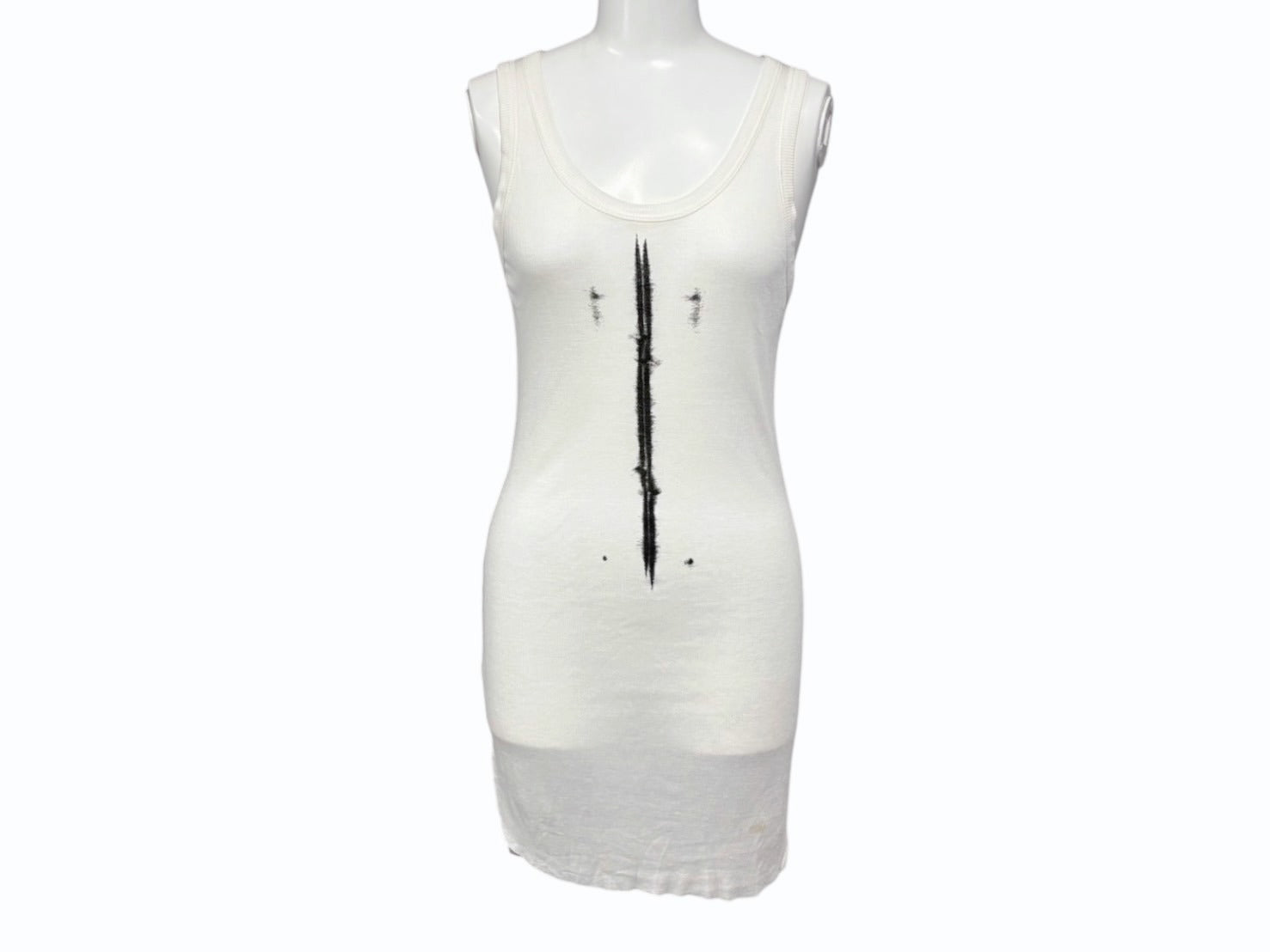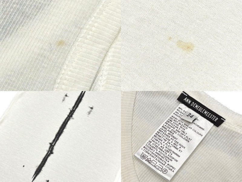 ANN DEMEULEMEESTER アン ドゥムルメステール タンクトップ ノースリーブ サイズ34 プリント ブラック ホワイト 美品 中古 4b009590
