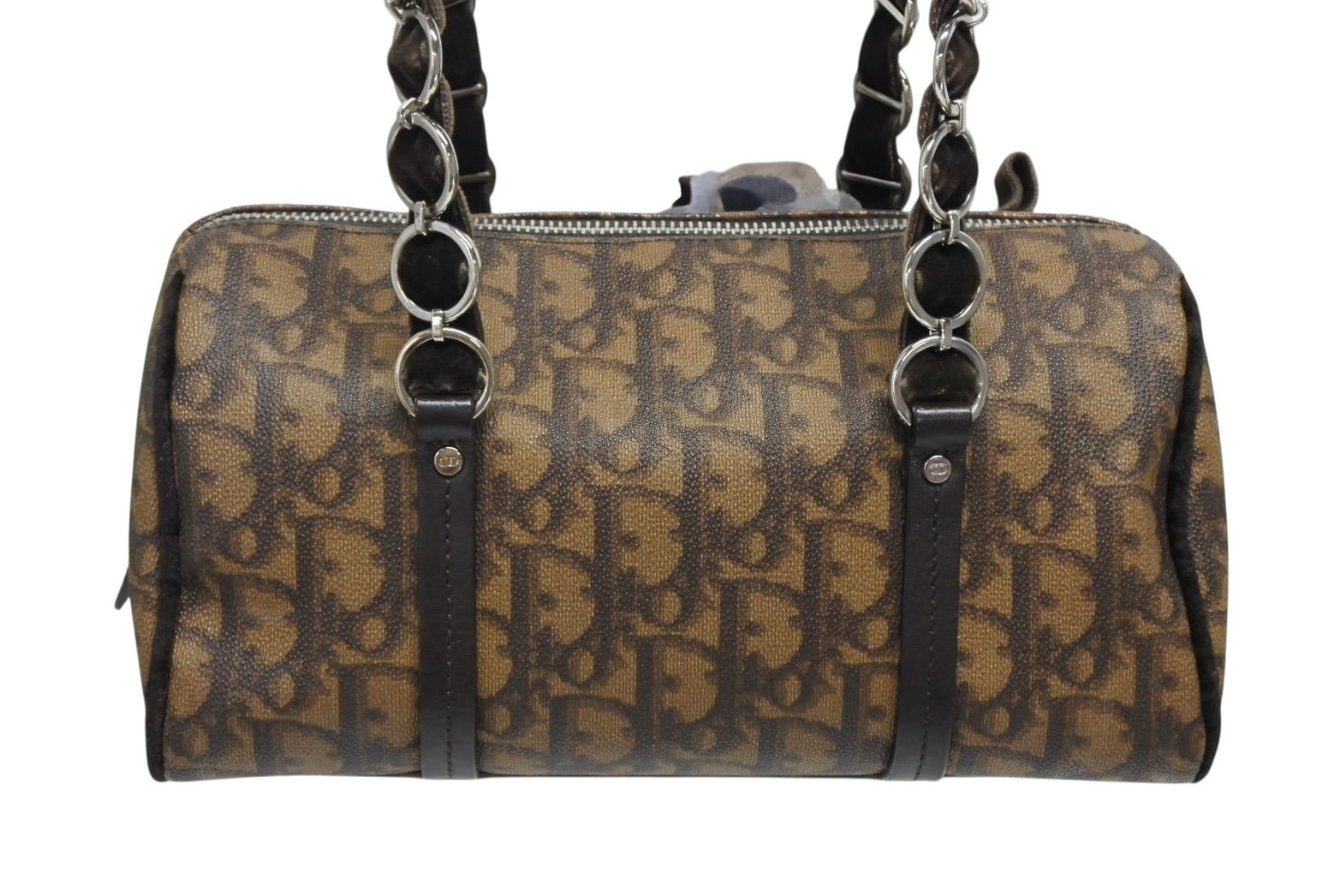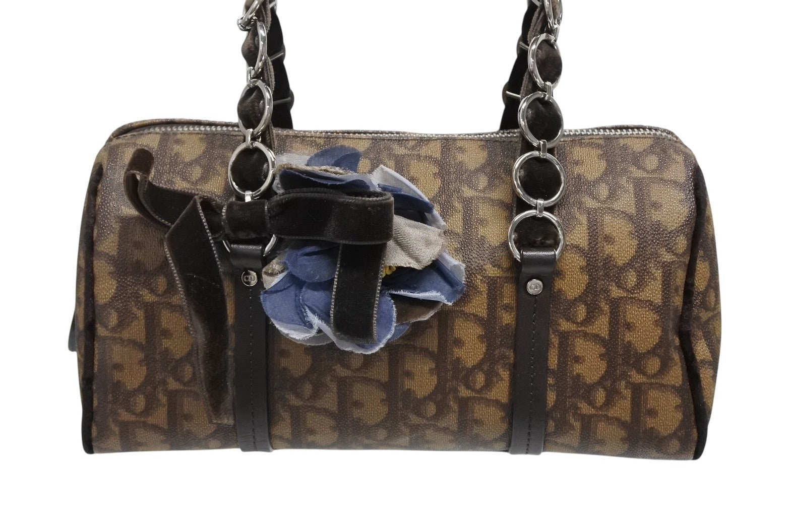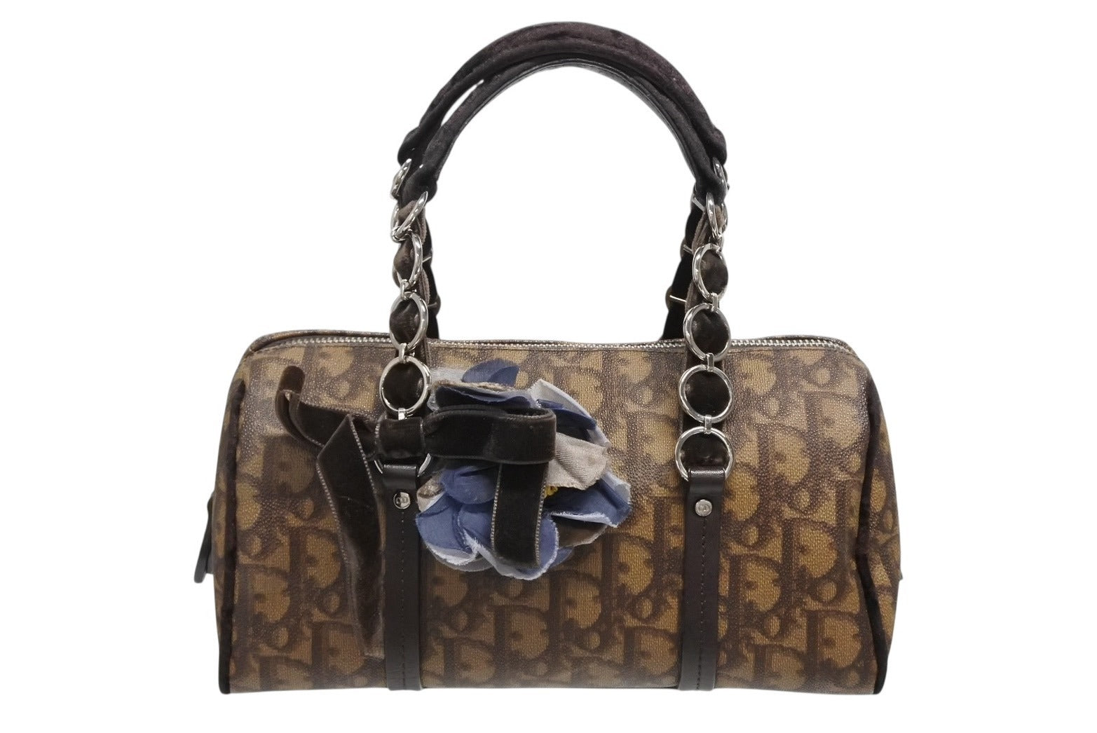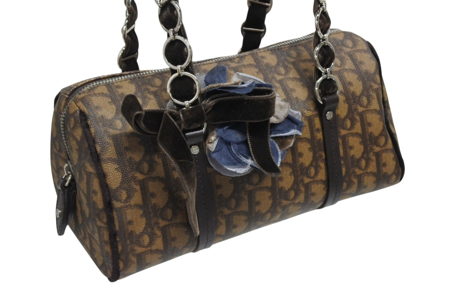花柄部分にシミあり、シルバー金具部分微かにクスミ、小傷あります。