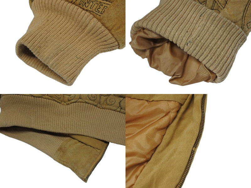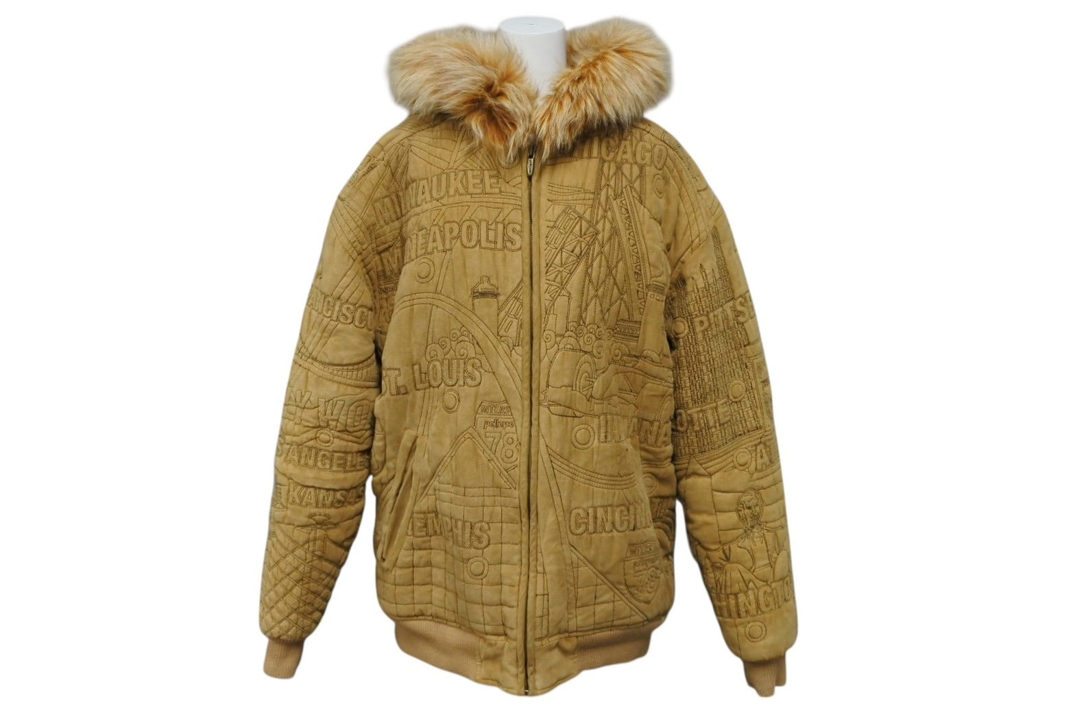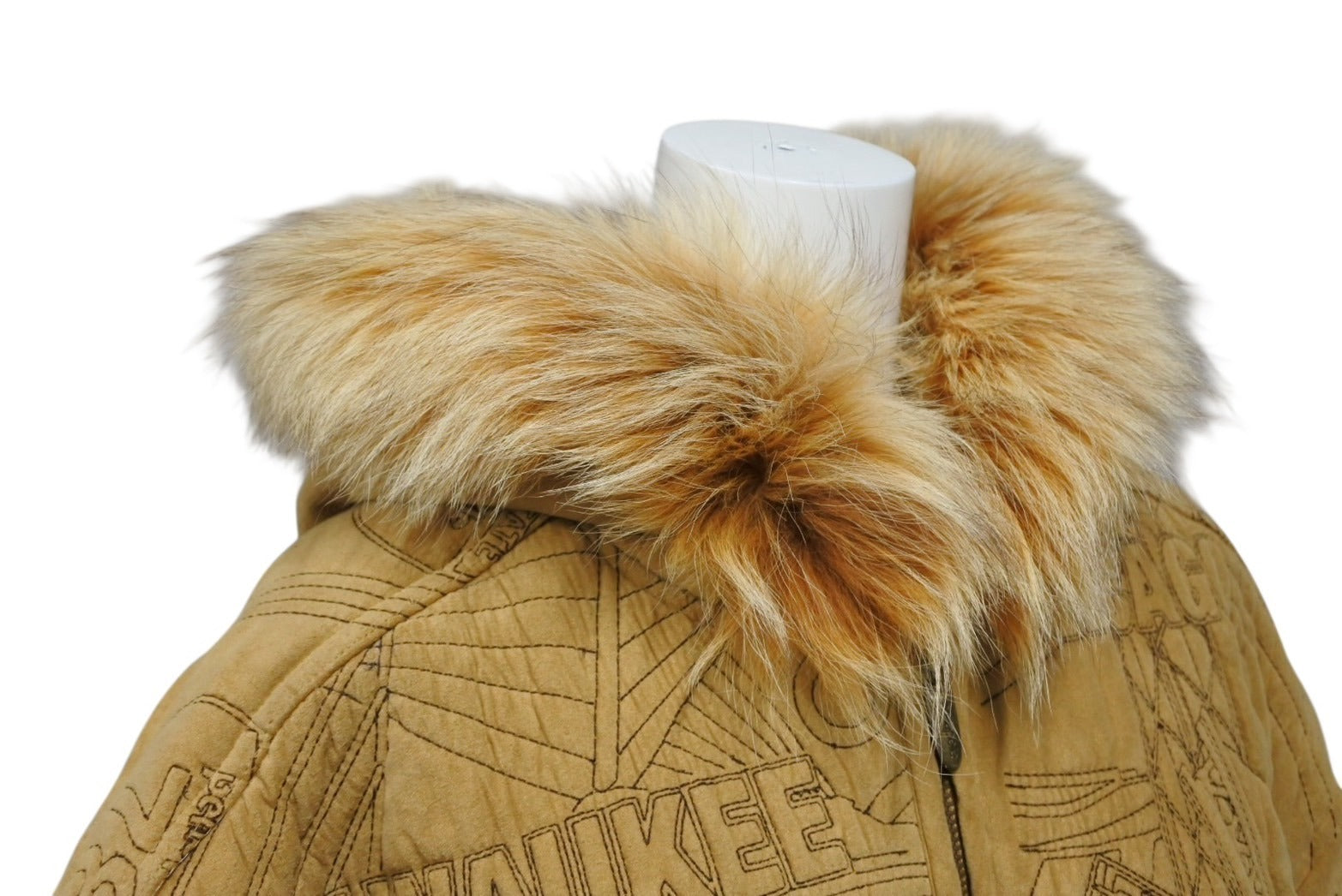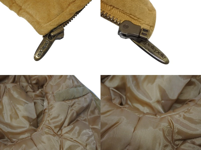 pelle pelle ペレペレ ボンバー フーデッドジャケット サイズM ステッチ ブラウン フェイクファー 総柄 美品 中古 4b010432