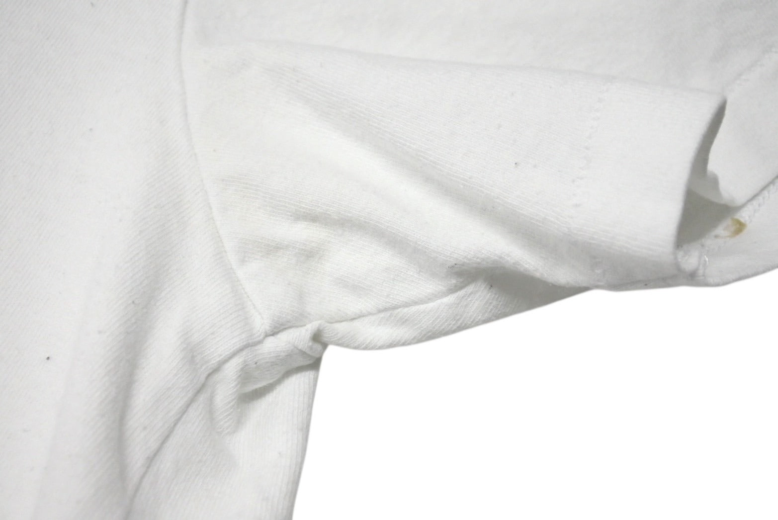 脇に黄ばみあり。背面下部付近に小ジミあり。少々の毛玉あり。全体的に少々毛羽立ちあり。その他使用感の少ない状態です。