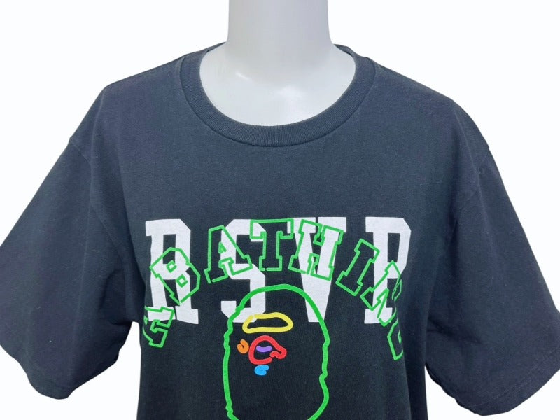 A BATHING APE アベイシングエイプ RSVP アールエスブイピー 半袖Tシャツ ブラック グリーン ホワイト サイズM 美品 中古 4b005826