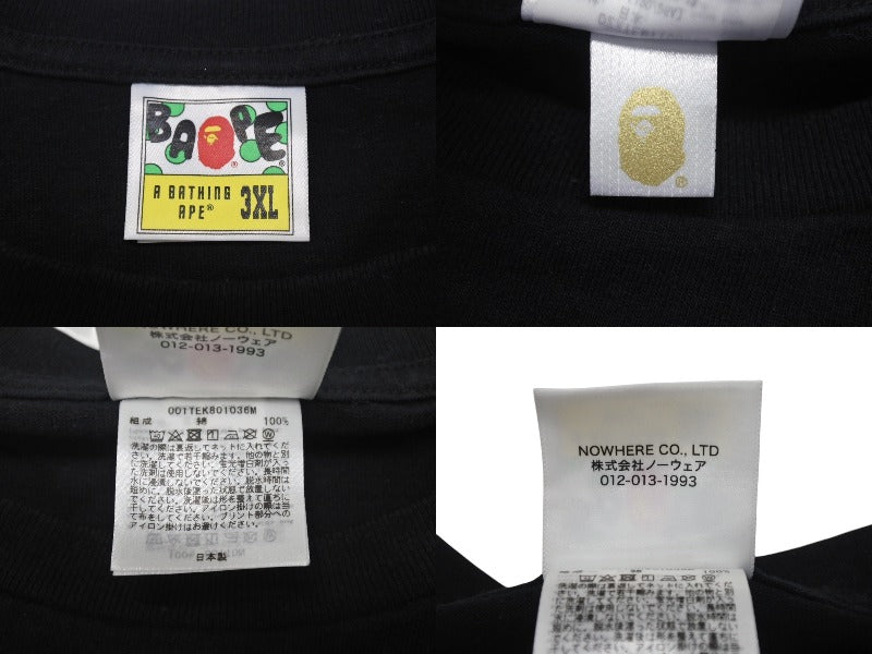 A BATHING APE アベイシングエイプ FLORAL CAMO COLLEGE TEE 半袖Tシャツ ブラック ホワイト マルチカラー 3XL 美品 中古 4c075943