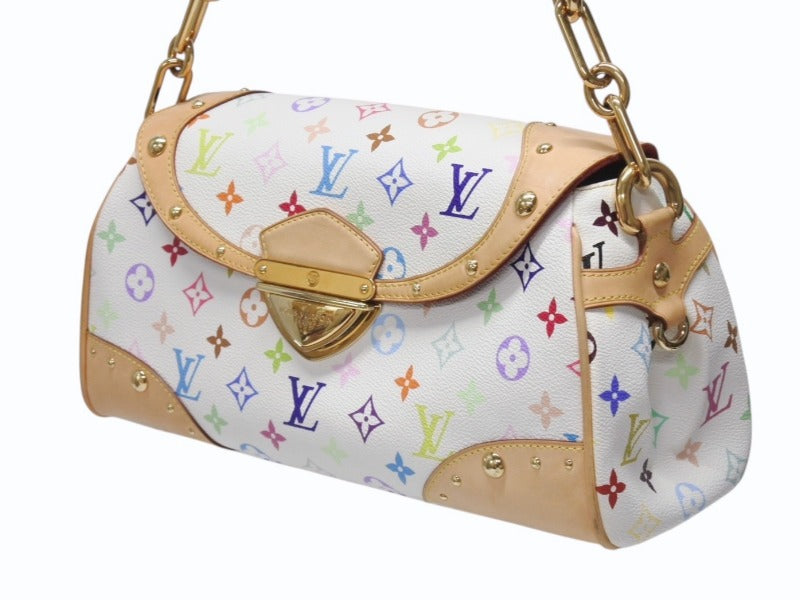 LOUIS VUITTON ルイヴィトン ビバリーMM ワンショルダーバッグ M40203 モノグラム マルチカラー ホワイト 村上隆 ゴールド金具 美品 中古 4b004996
