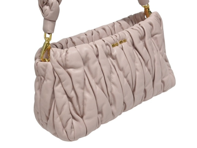 極美品 MIUMIU ミュウミュウ ワンショルダーバッグ マテラッセ 5BC022 ピンク レザー ゴールド金具 中古 4b005143