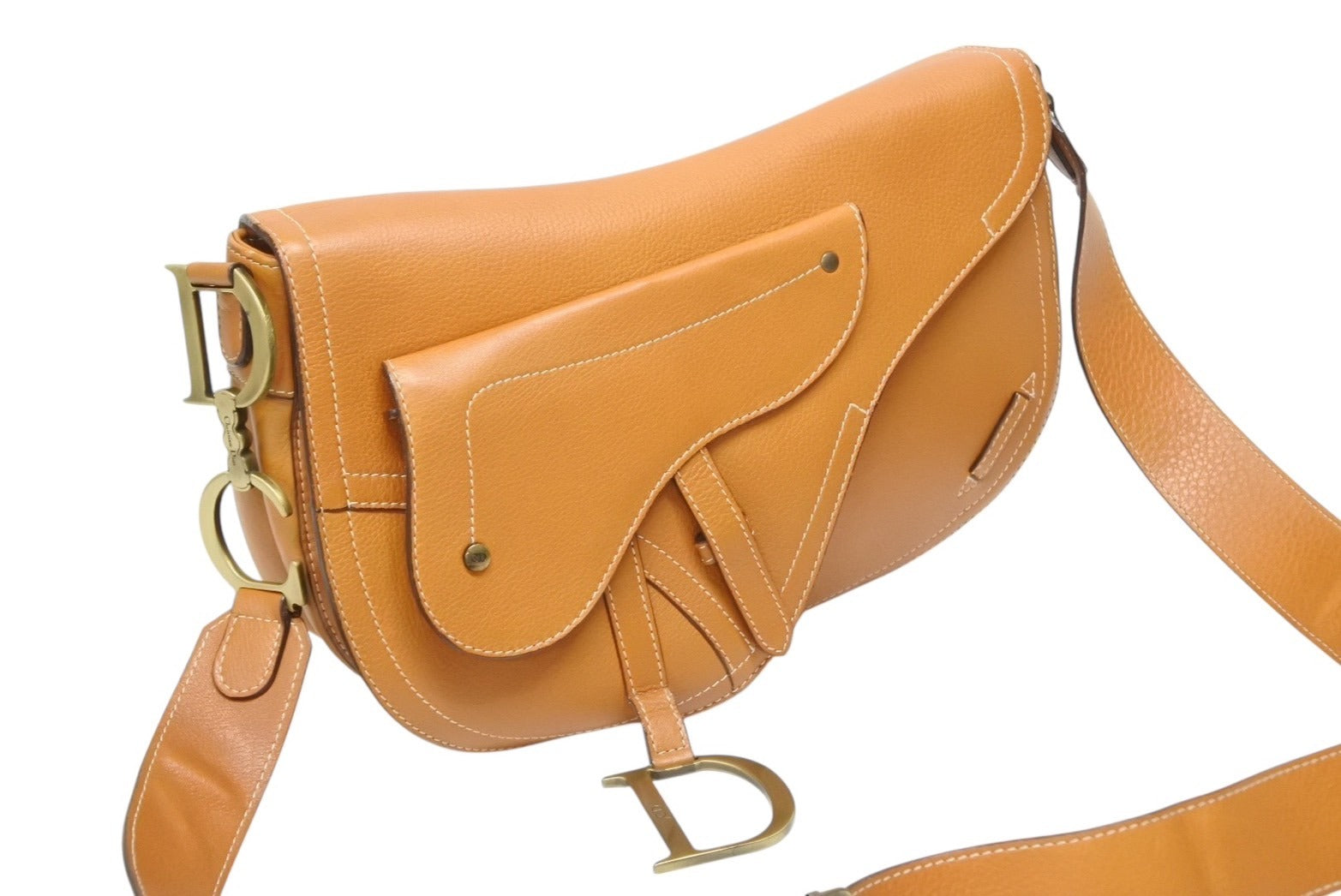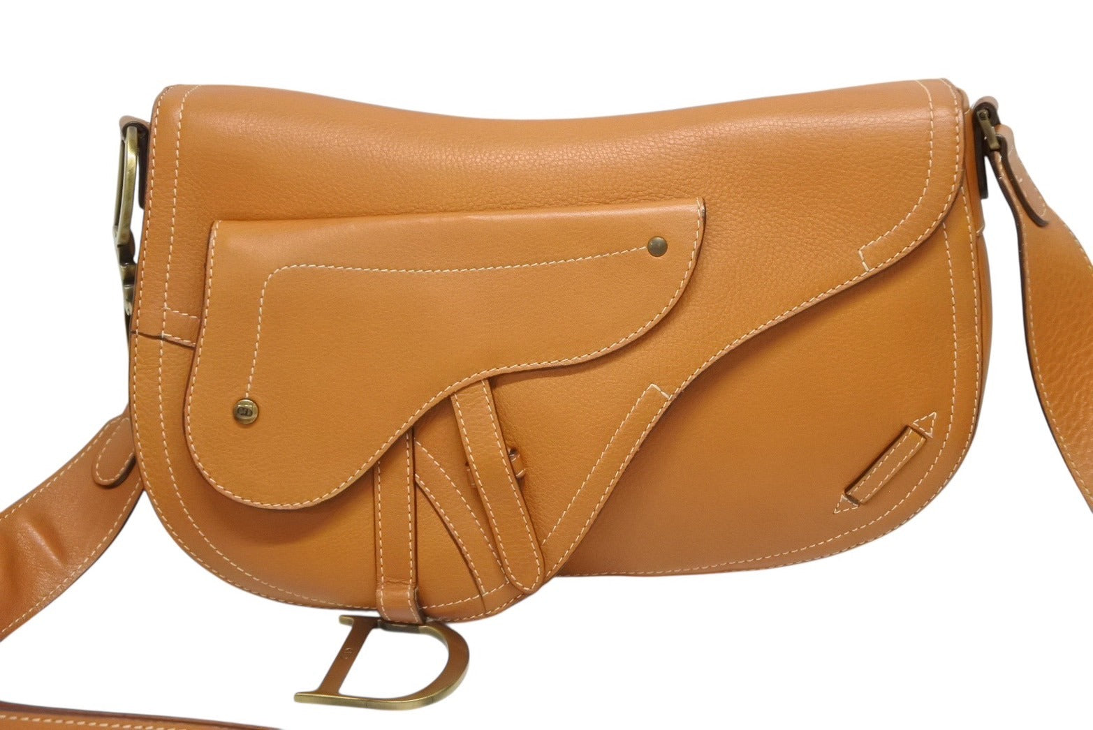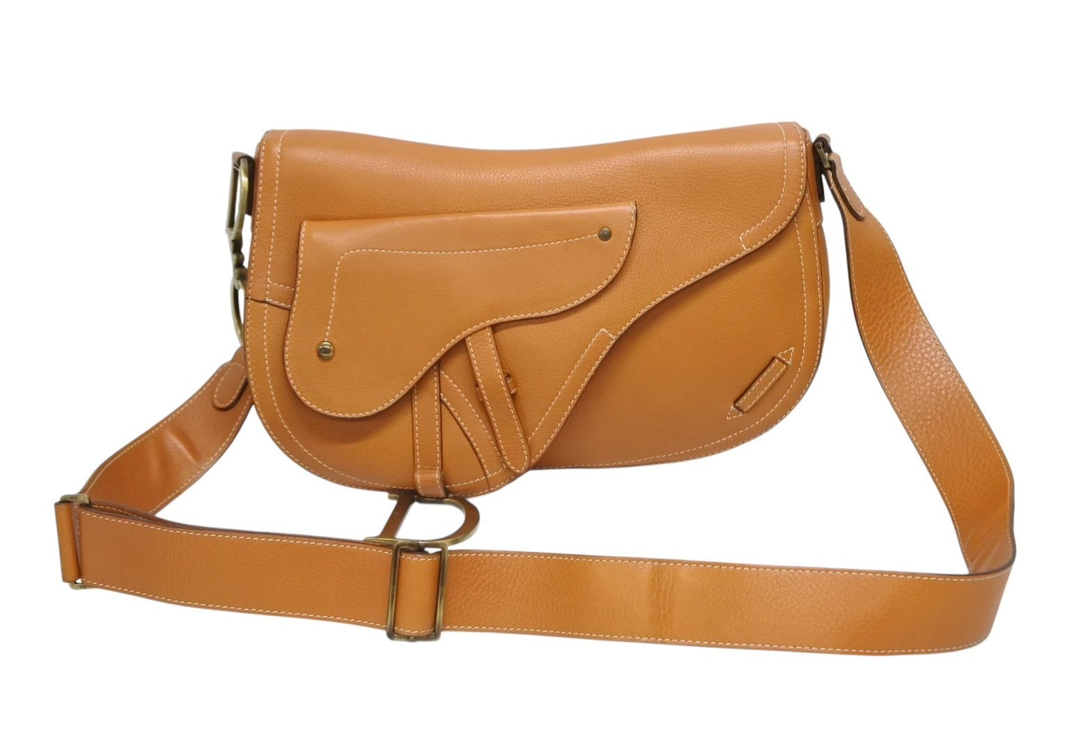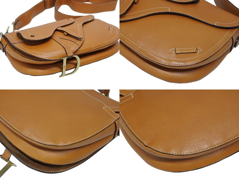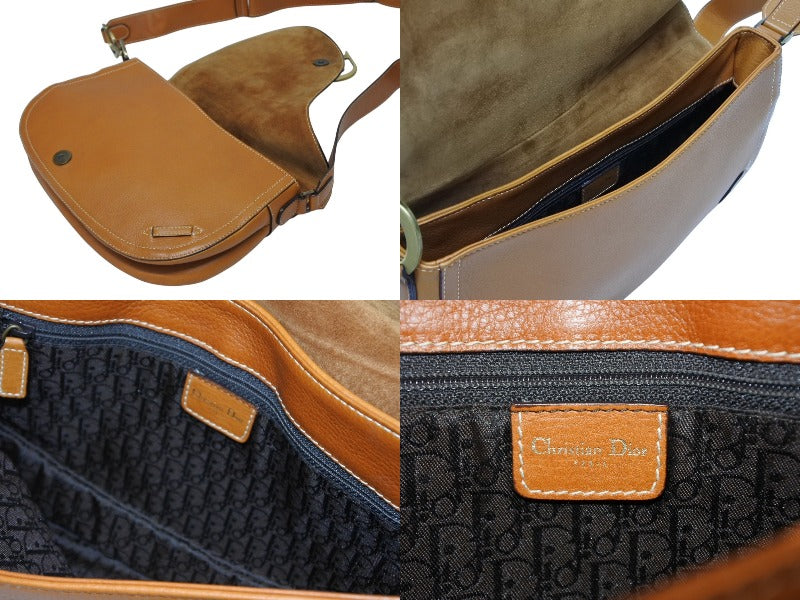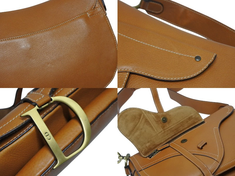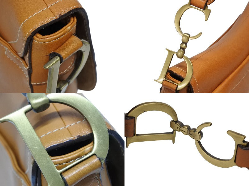 極美品 CHRISTIAN DIOR クリスチャンディオール サドル ワンショルダーバッグ レザー ブラウン アンティークゴールド金具 中古 4b009140