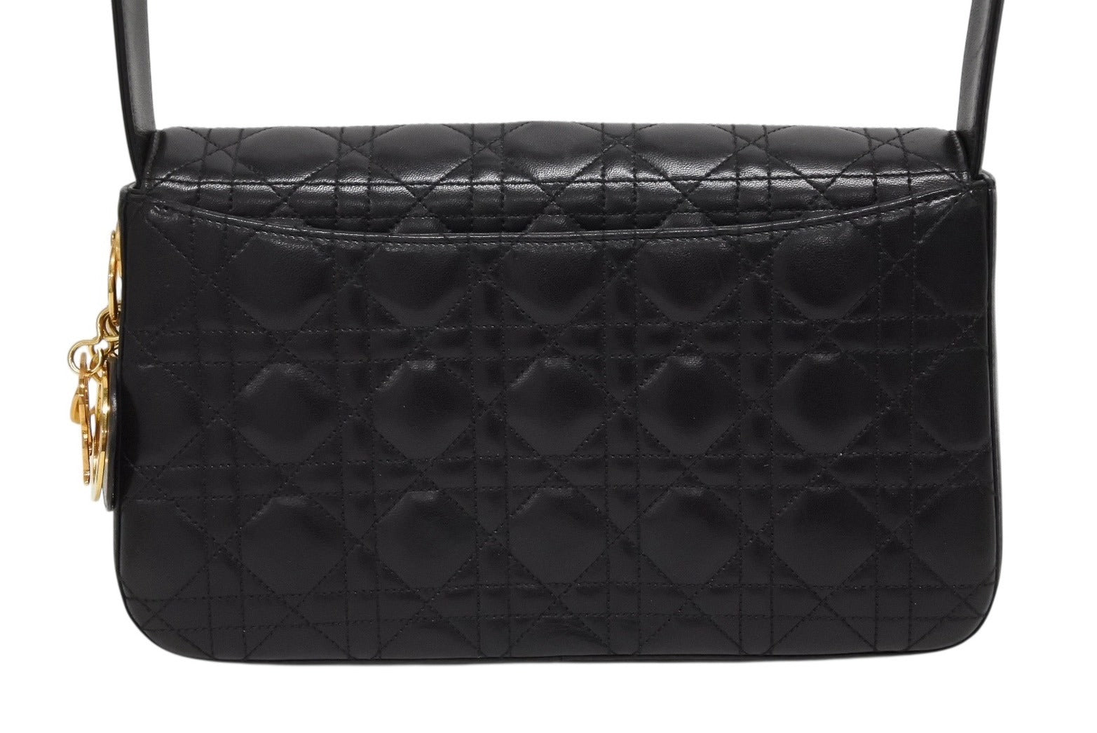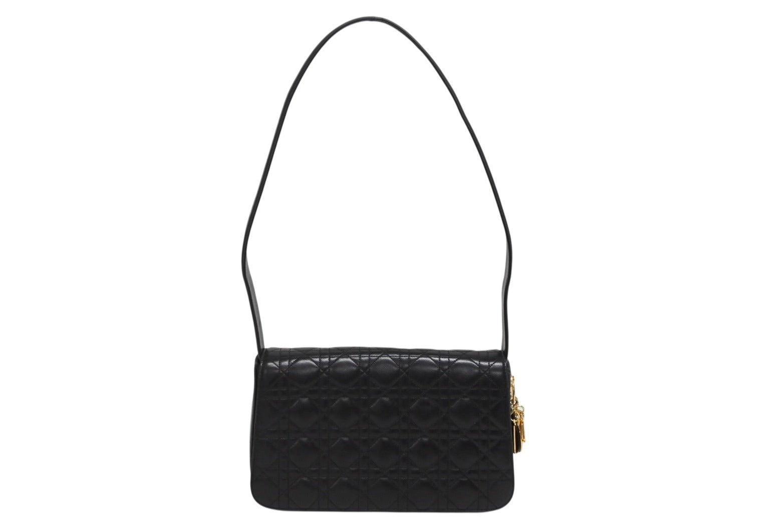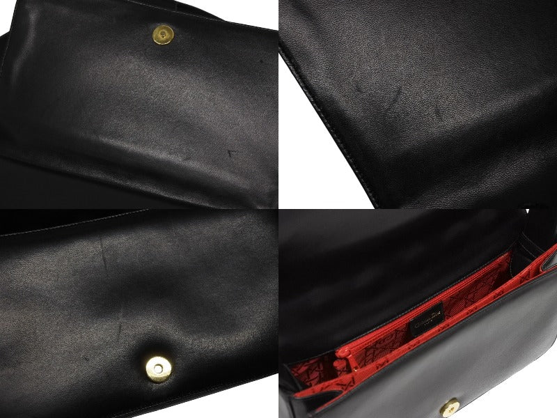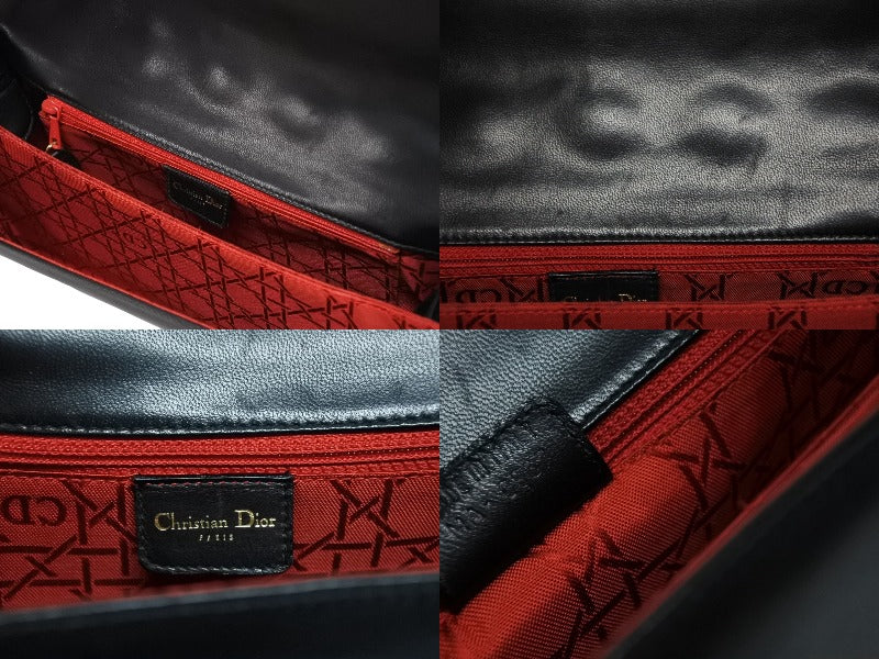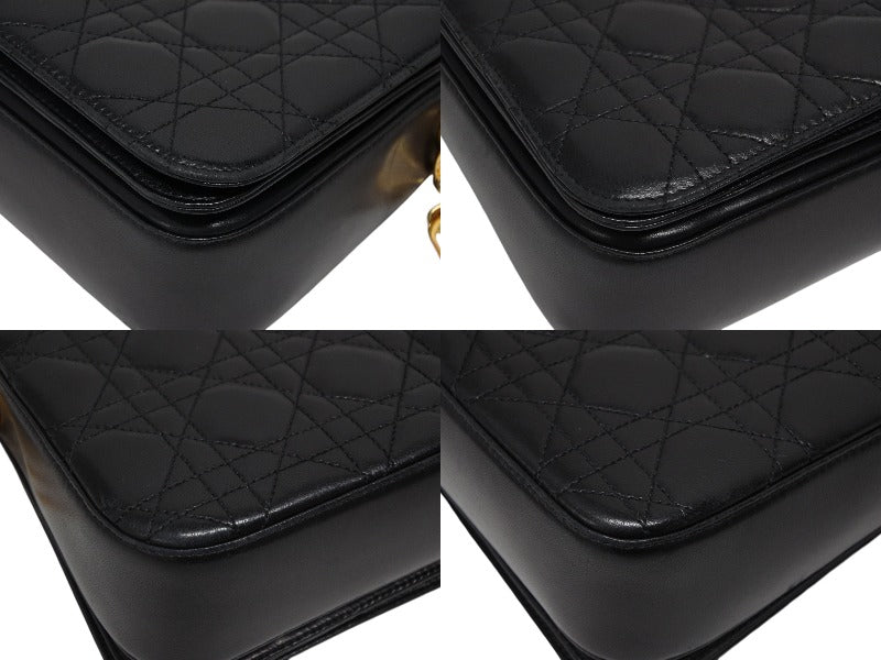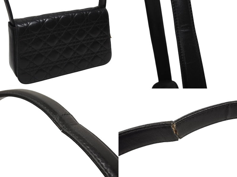 CHRISTIAN DIOR クリスチャンディオール カナージュ ワンショルダーバッグ ラムスキン ブラック ゴールド金具 美品 中古 4b009198