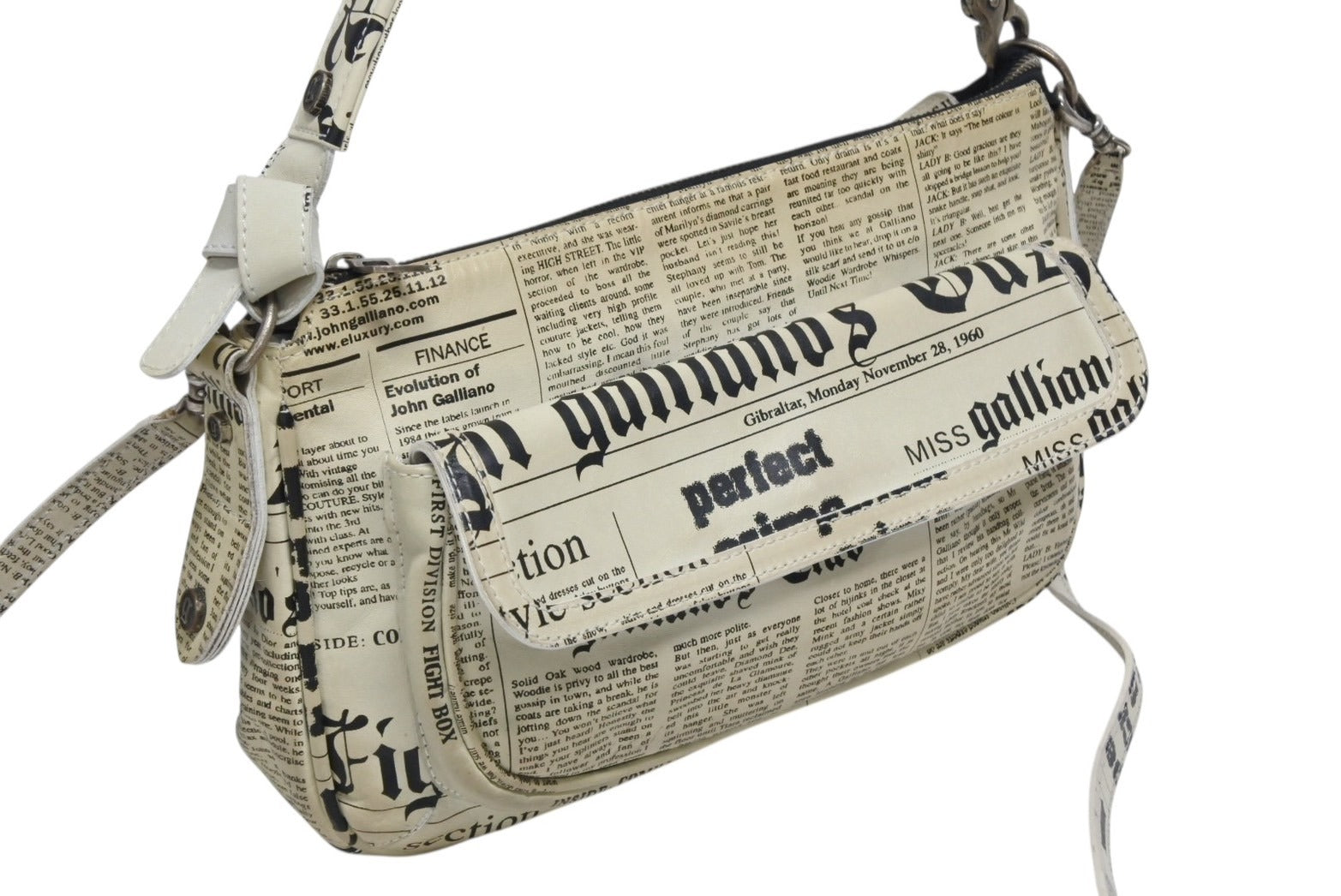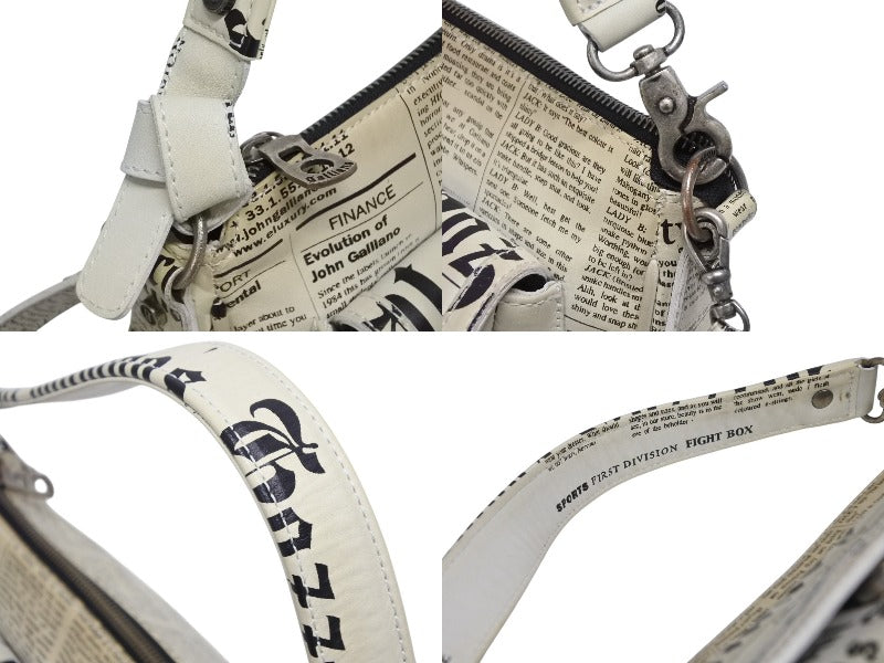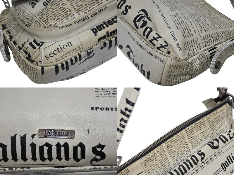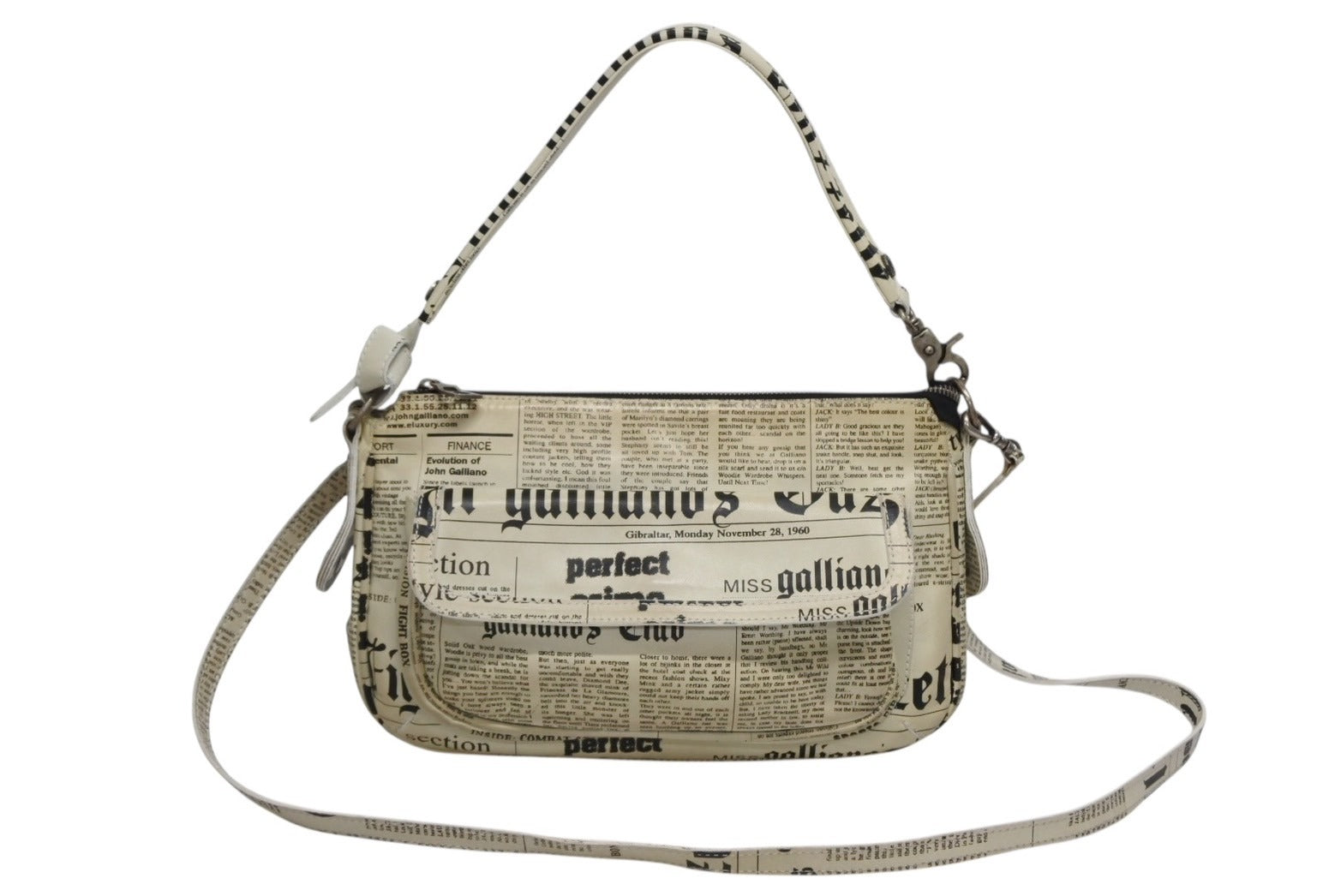 Galliano ガリアーノ ニュースペーパー 2WAYショルダーバッグ 5R912008 ホワイト ブラック アーカイブ 良品 中古 4b010380