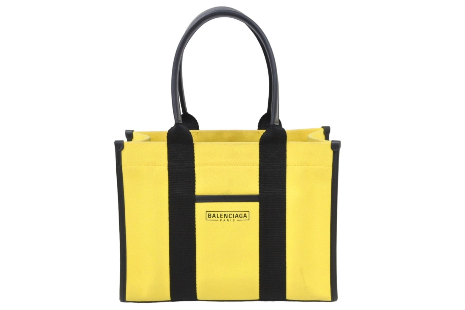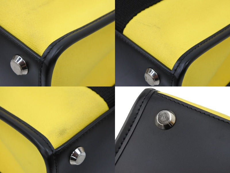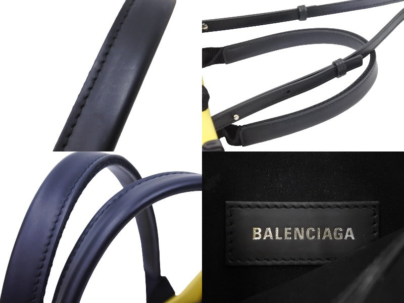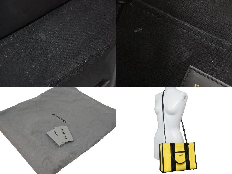 BALENCIAGA バレンシアガ トートバッグ ショルダーバッグ ハードウェア キャンバス イエロー ブラック シルバー金具 美品 中古49716