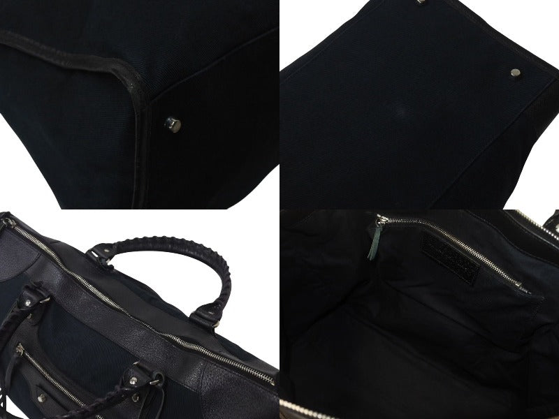 BALENCIAGA バレンシアガ ザ ワーク ハンドバッグ 132110 キャンバス レザー ブラック シルバー金具 美品 中古 4b000743