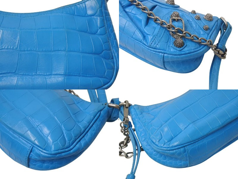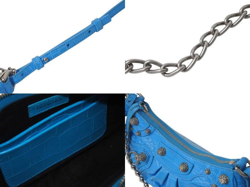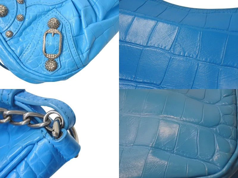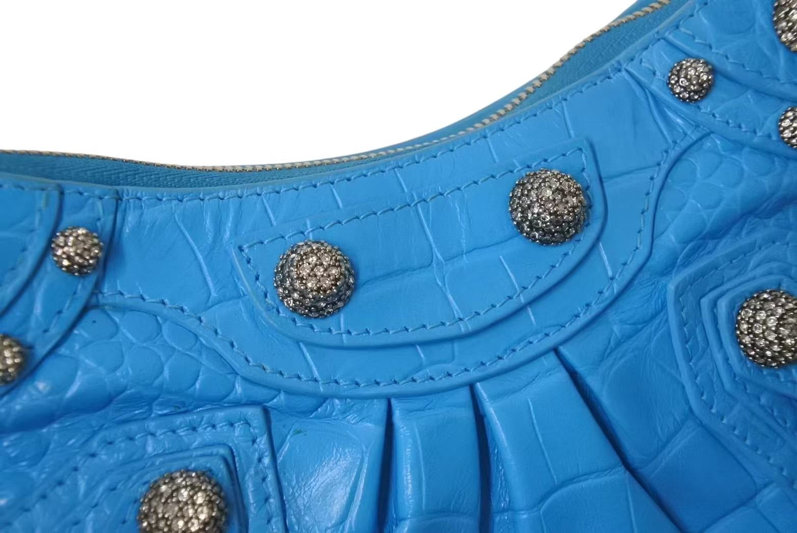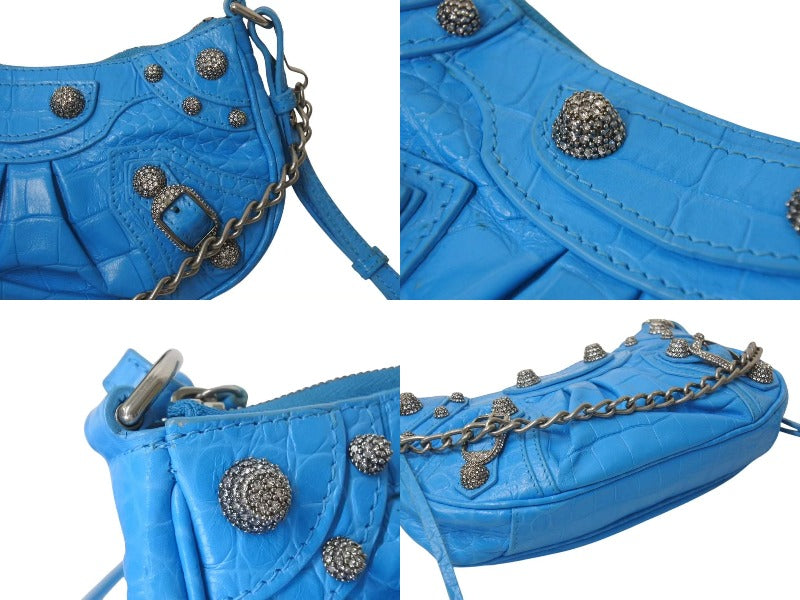 BALENCIAGA バレンシアガ Le Cagole Mini ミニ ショルダーバッグ ラインストーン ブルー カーフスキン 美品 中古 4b000775