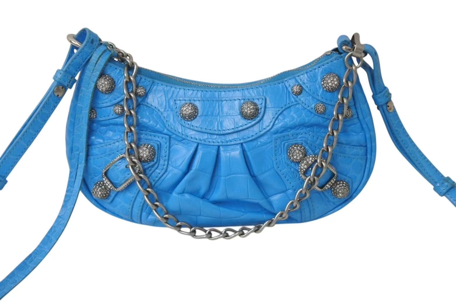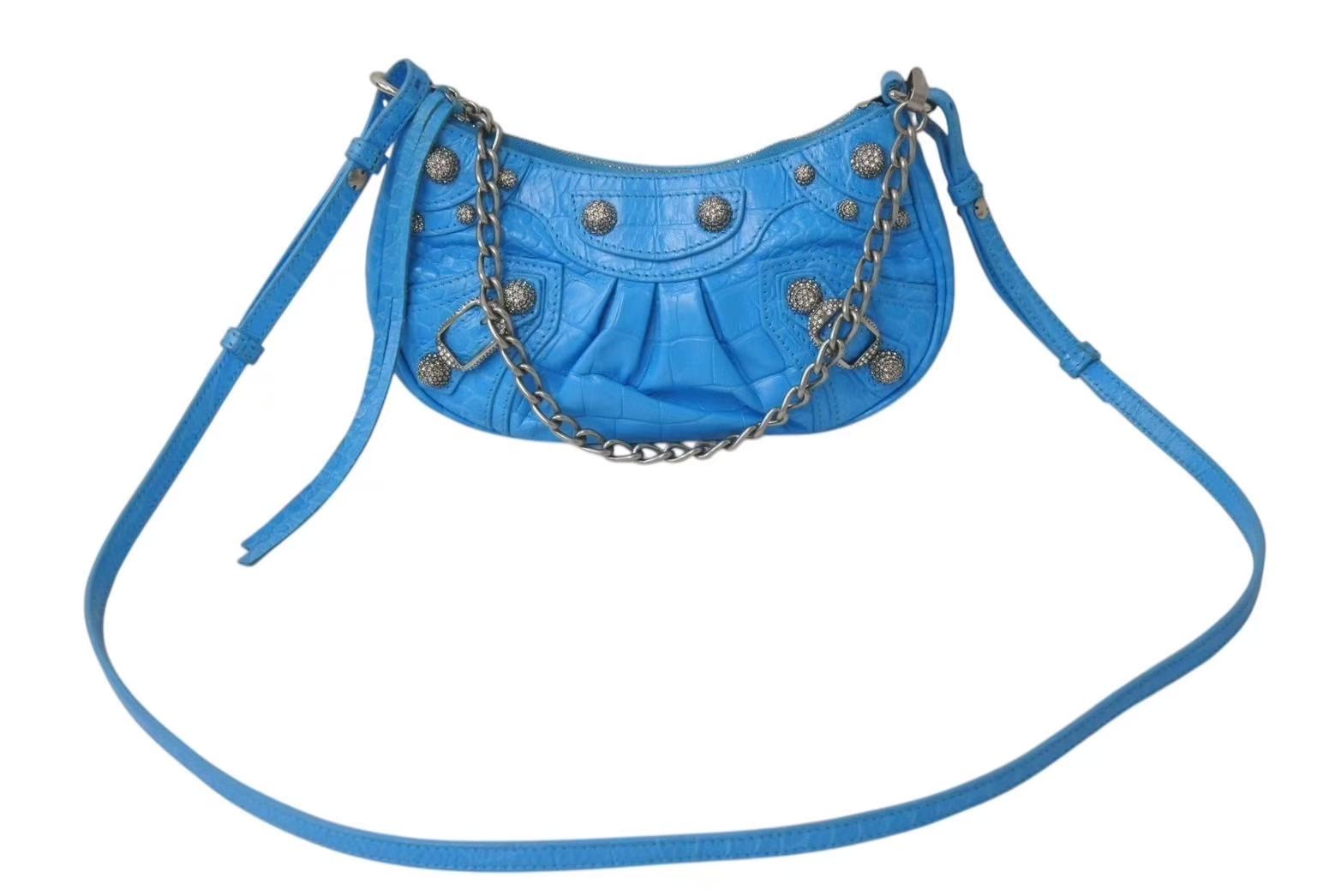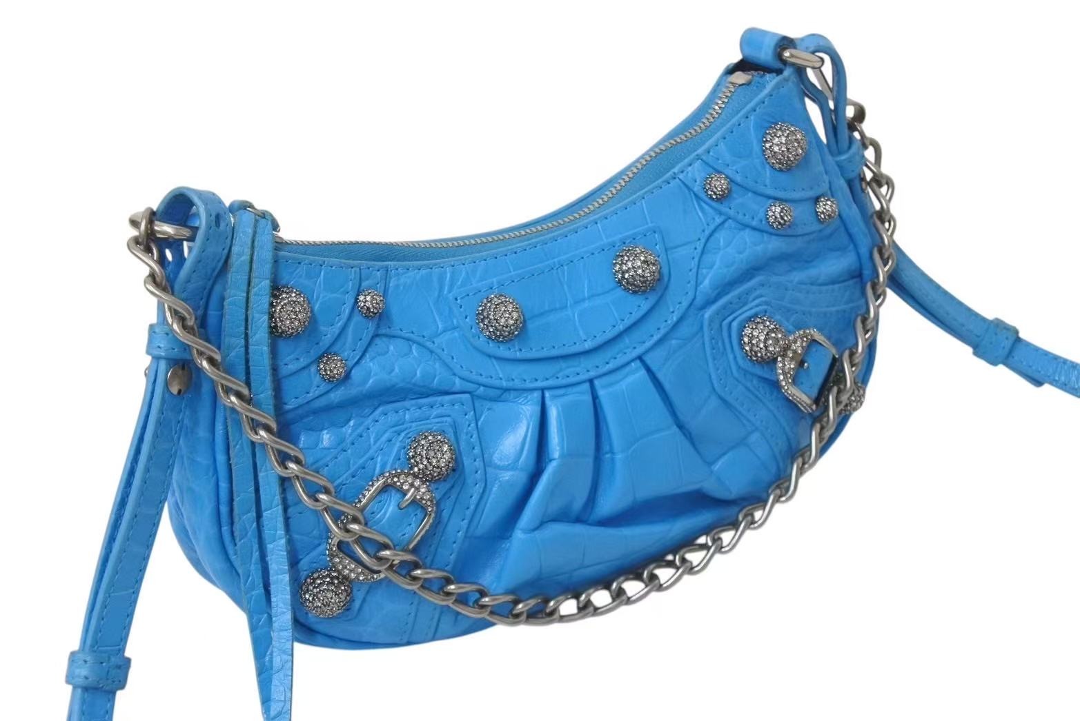 BALENCIAGA バレンシアガ Le Cagole Mini ミニ ショルダーバッグ ラインストーン ブルー カーフスキン 美品 中古 4b000775