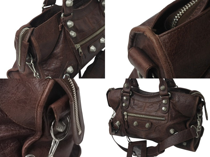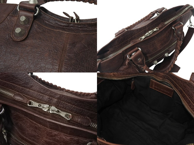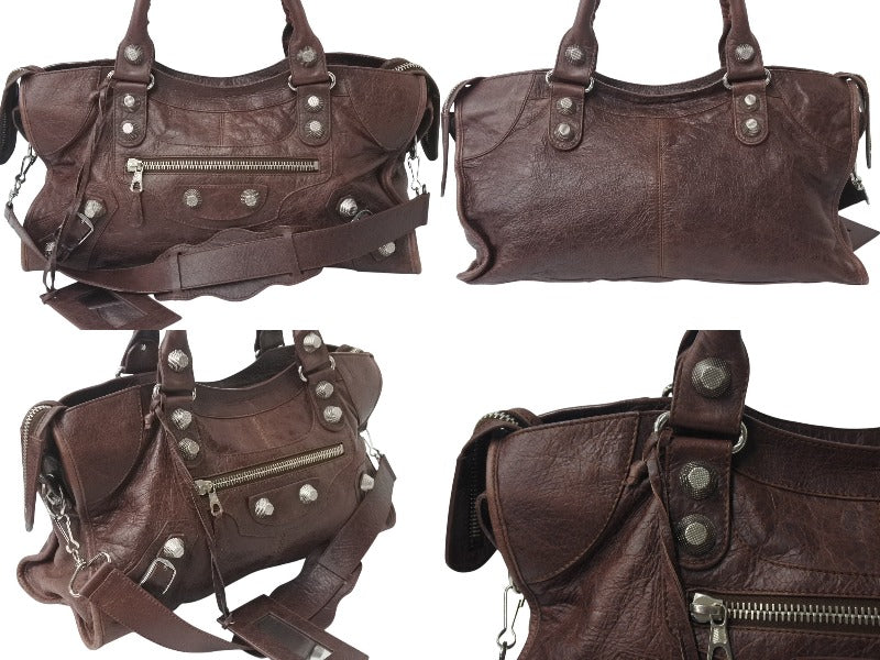BALENCIAGA バレンシアガ ザ ジャイアント パートタイム ショルダーバッグ ハンドバッグ 2WAY 173082 ブラウン レザー 良品 中古 4b000807