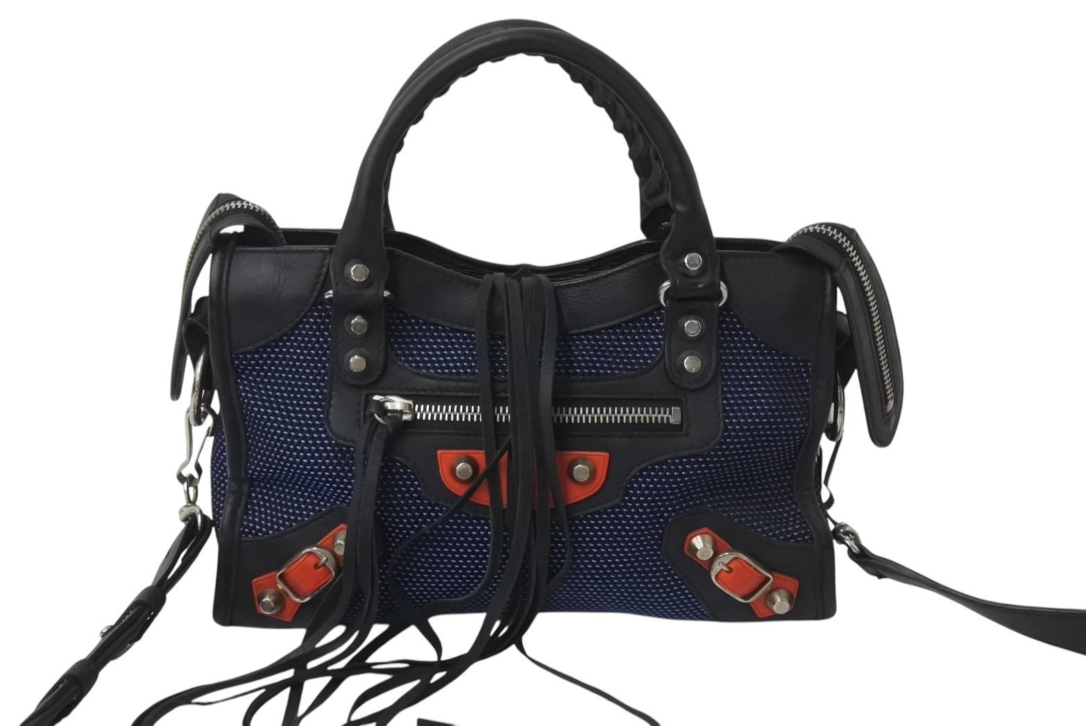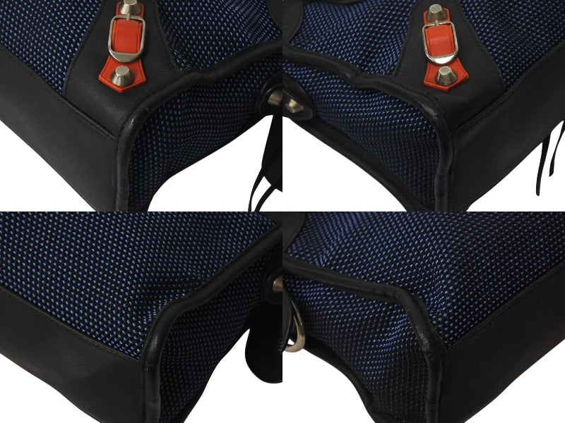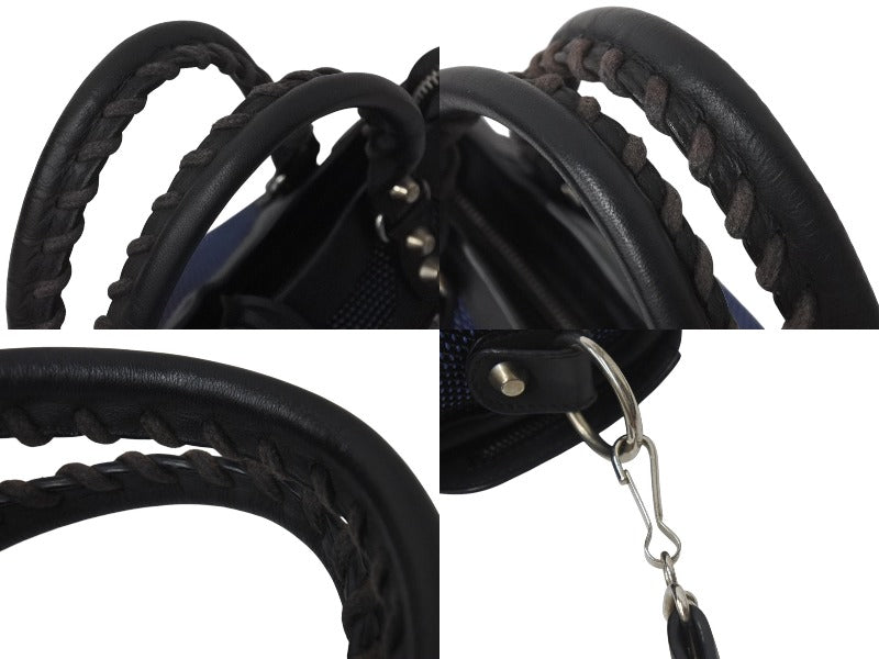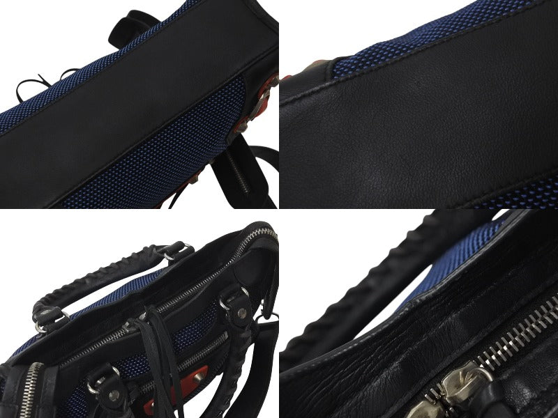 BALENCIAGA バレンシアガ ミニシティ 2WAY ハンドバッグ 300295 ブラック ネイビー キャンバス レザー 良品 中古 4b000820