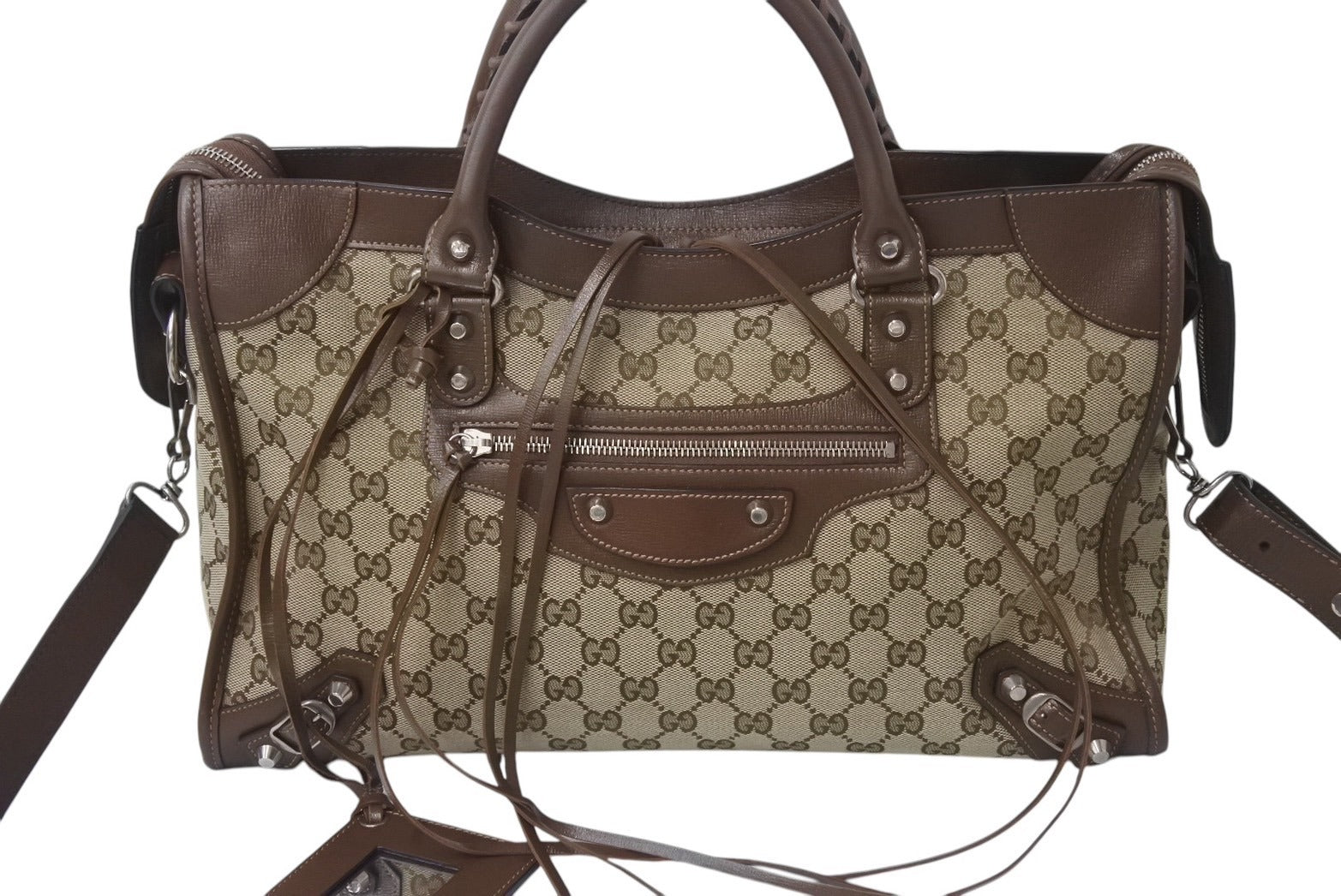 極美品 BALENCIAGA × GUCCI バレンシアガ × グッチ Neo Classic City bag シティ ハンドバッグ ショルダーバッグ 2WAY WS13181 レザー 中古 4b000836