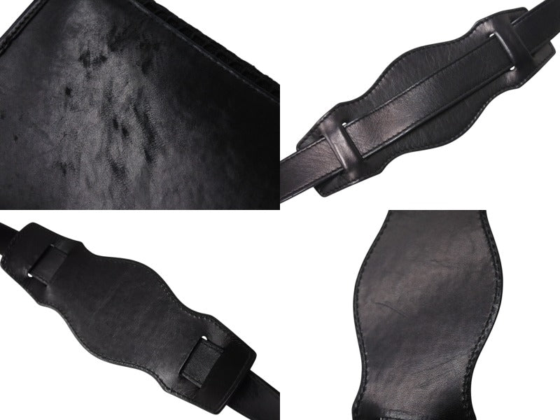 背面ハンドル根元ビスに欠品あり。フロントポケットレザー部分にスレ、変色あり。表面、底面レザーにスレ、傷、ヤケあり。ハンドルにスレ、コバスレ、ヤケあり。ショルダーストラップにすれ、ヤケ、歪みあり。内側スレ、汚れ、押し痕あり。金具にスレ、小傷あり。中古品としてご使用いただける状態です。