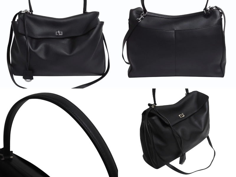 BALENCIAGA バレンシアガ ロデオ ラージ レザー 2WAY ショルダーバッグ 789744 ブラック シルバー金具 美品 中古 4b002353