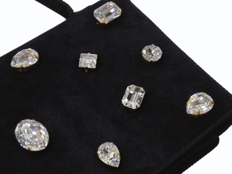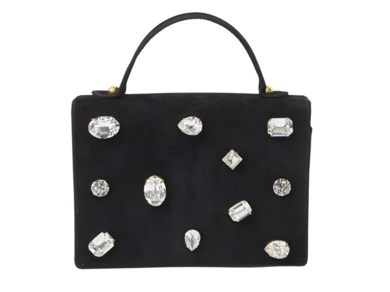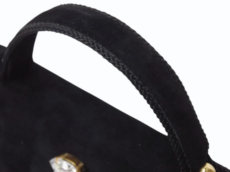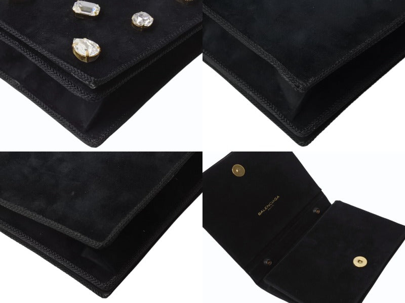 BALENCIAGA バレンシアガ ビジュー ラインストーン ミニハンドバッグ スウェード ビジュー ブラック ゴールド金具 美品 中古 4b002844
