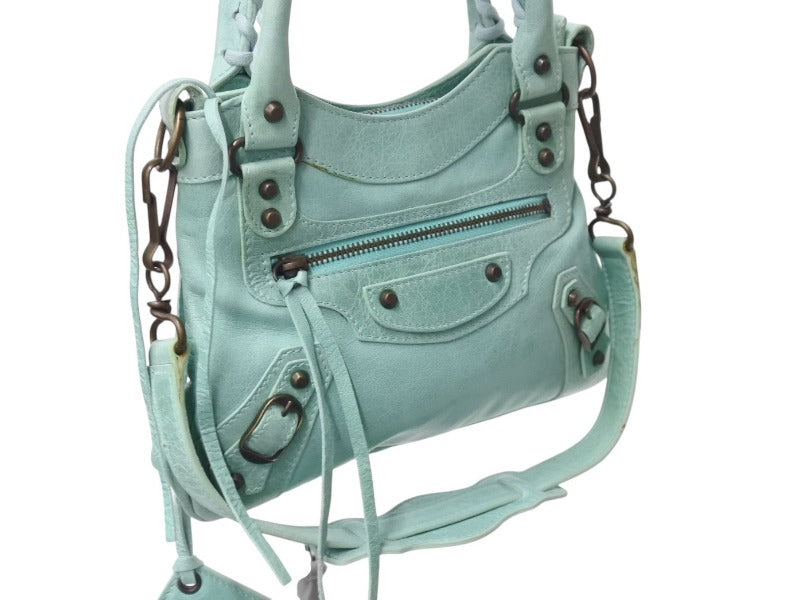 ストラップとフロント、マチ付近に小シミあります。