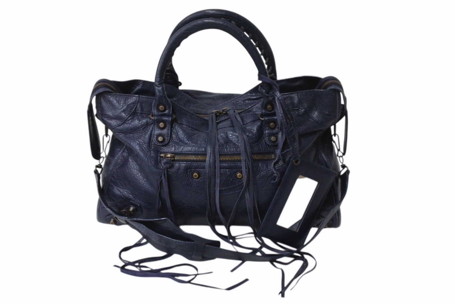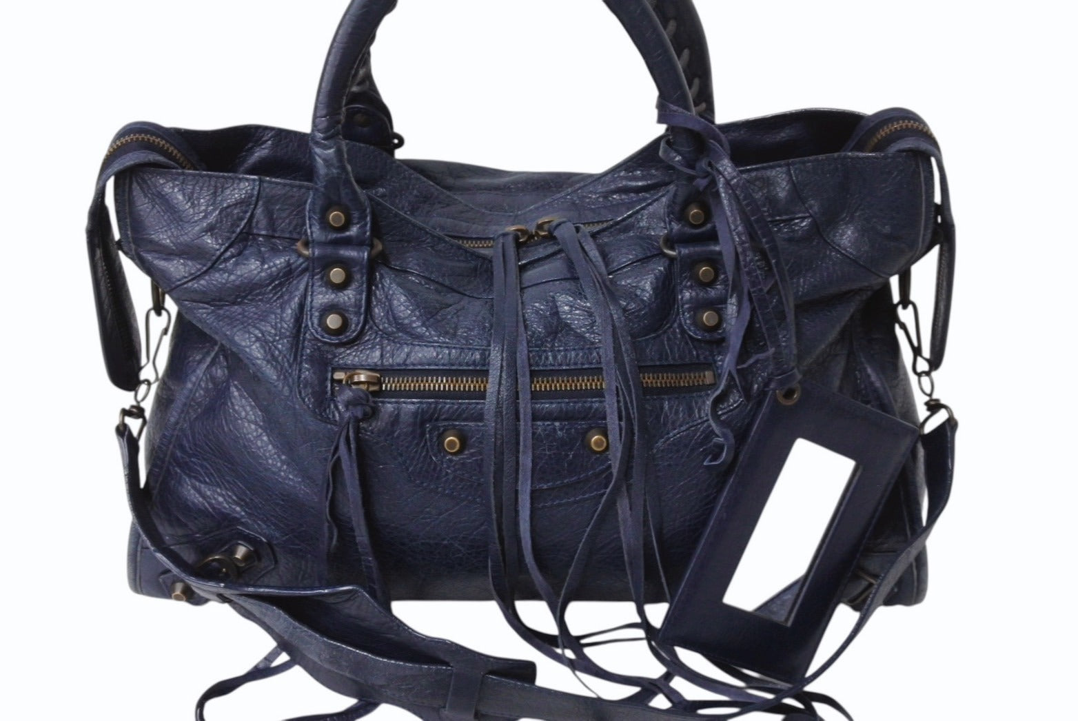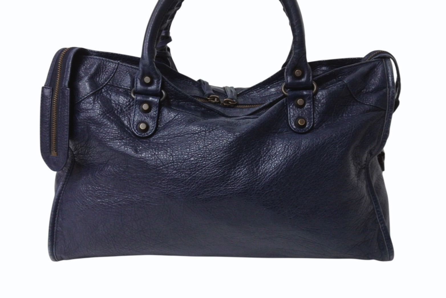 表面全体的にスレあり。ハンドル毛羽立ち、コバひび割れ、スレあり。ショルダースレあり。内側変色、使用感あり。ミラー小傷あり。