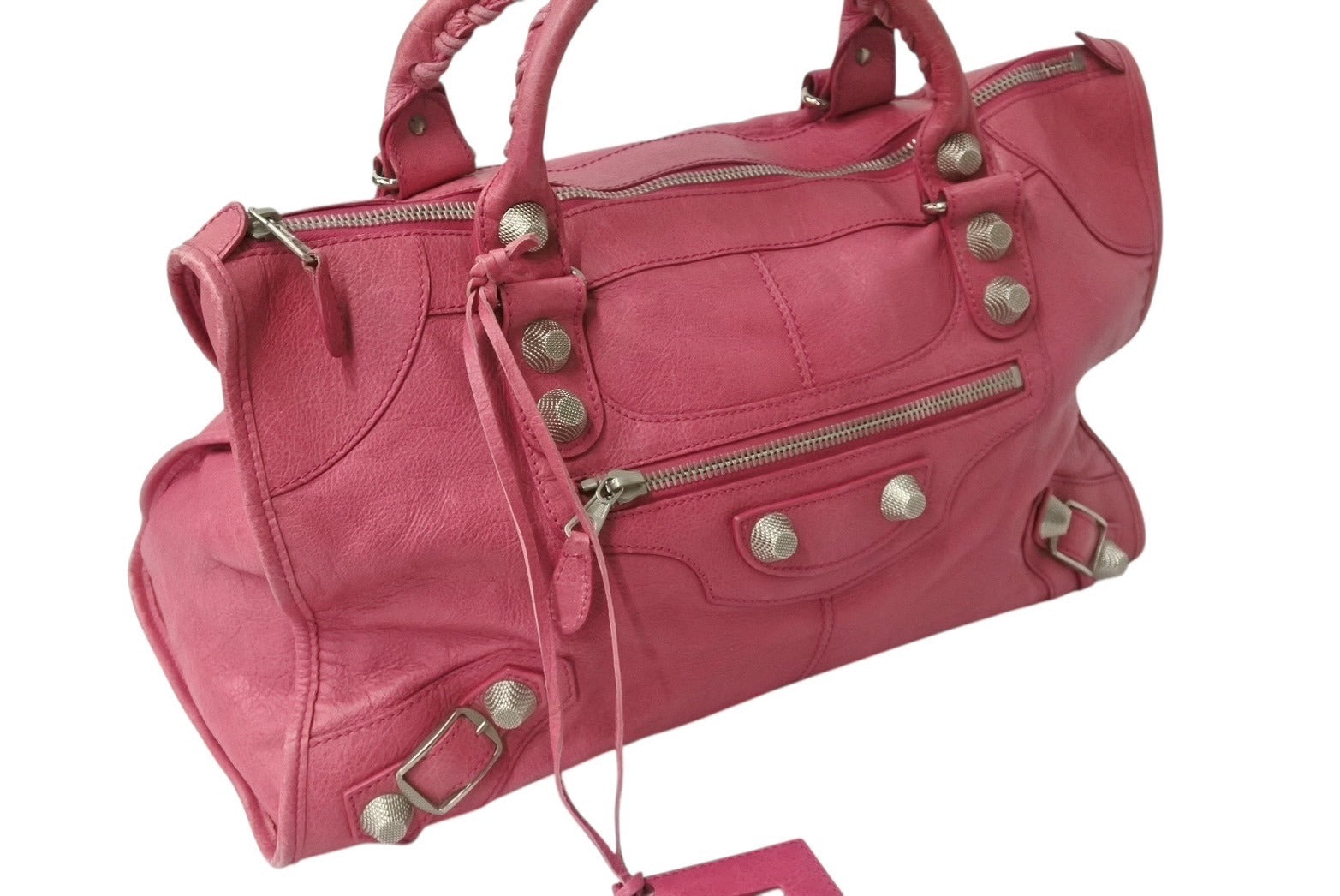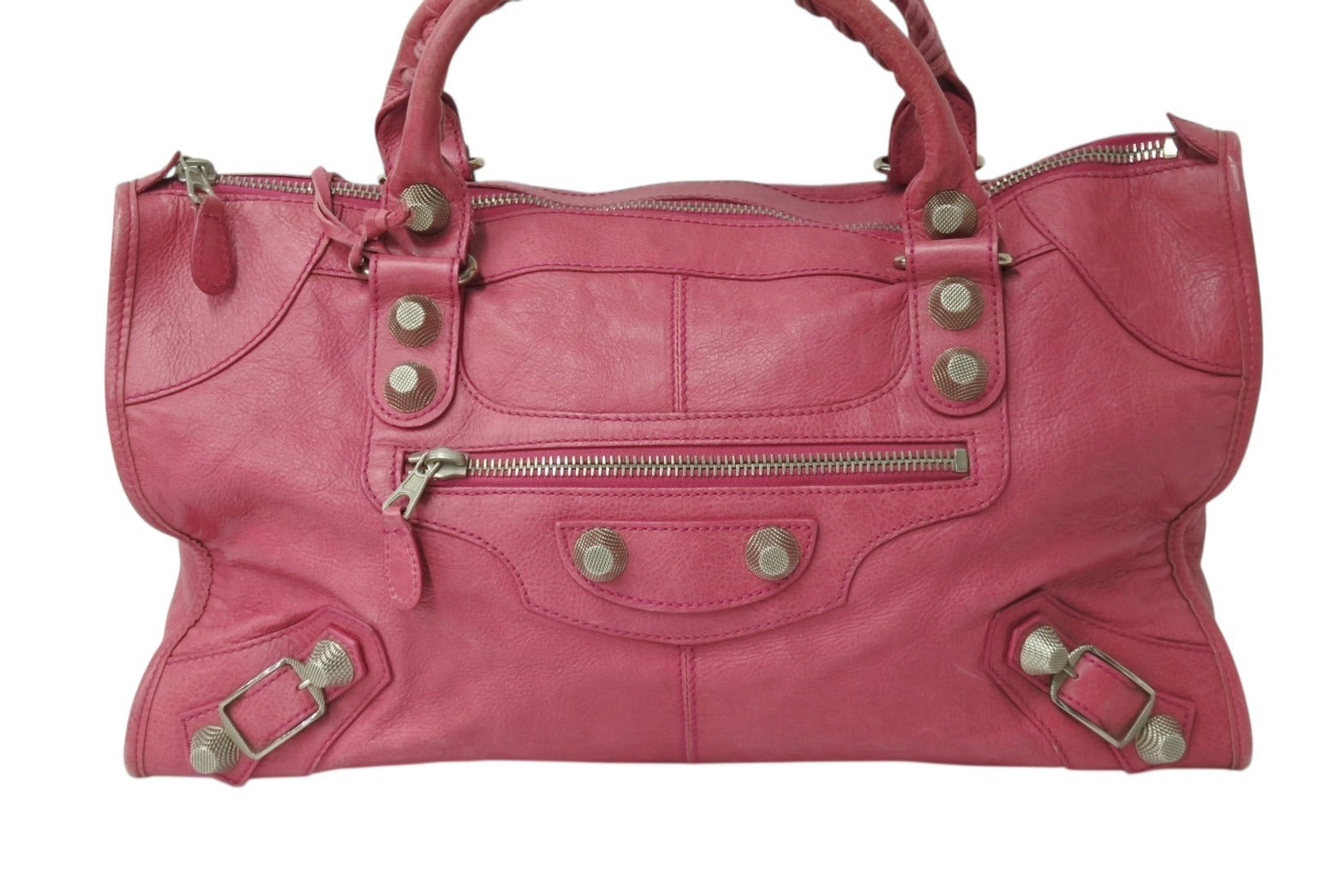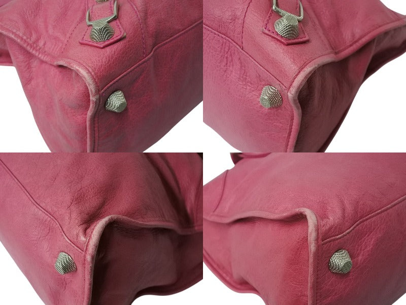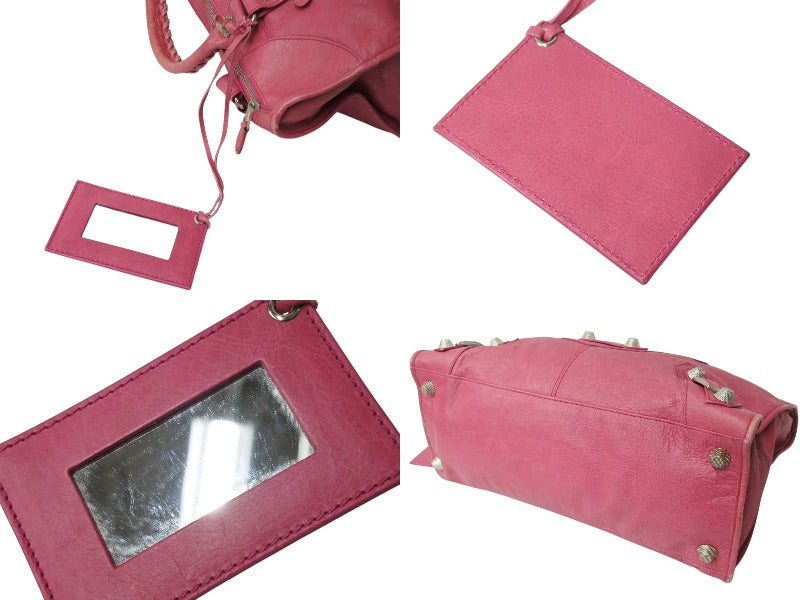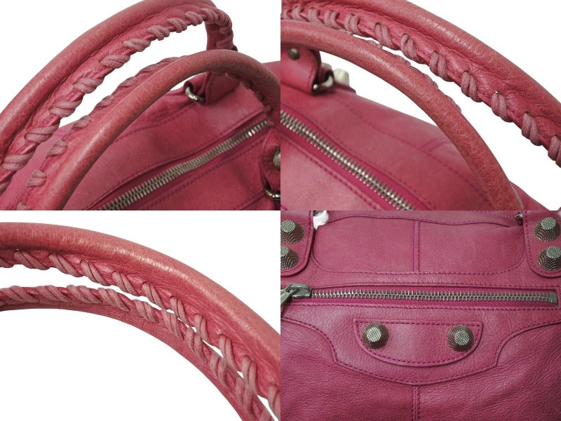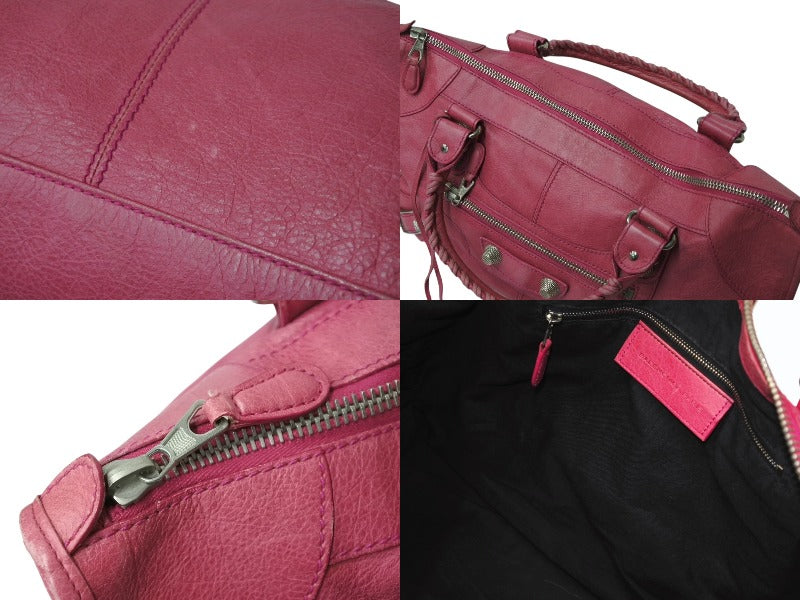 BALENCIAGA バレンシアガ ジャイアント ワーク ハンドバッグ ピンク レザー 173080 シルバー金具 スタッズ ワンショルダー 良品 中古 4b003729