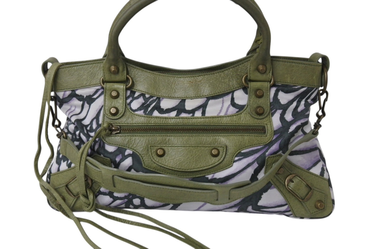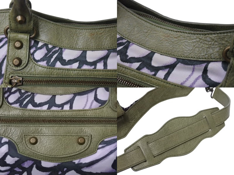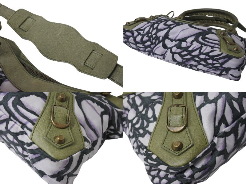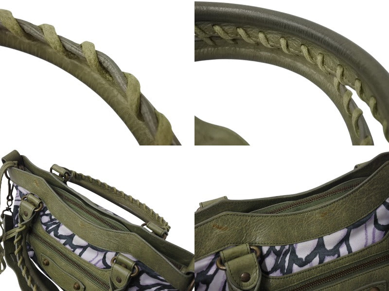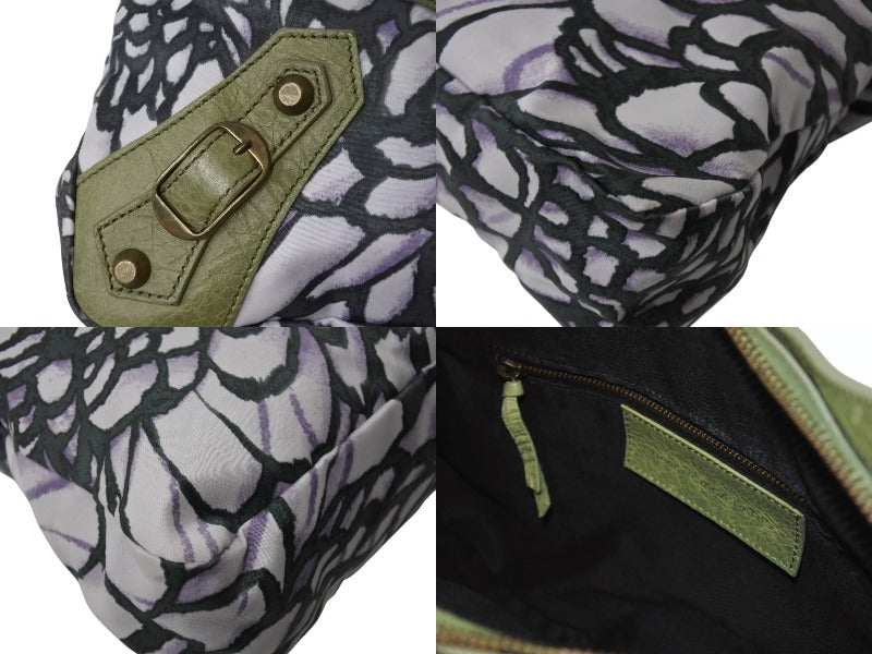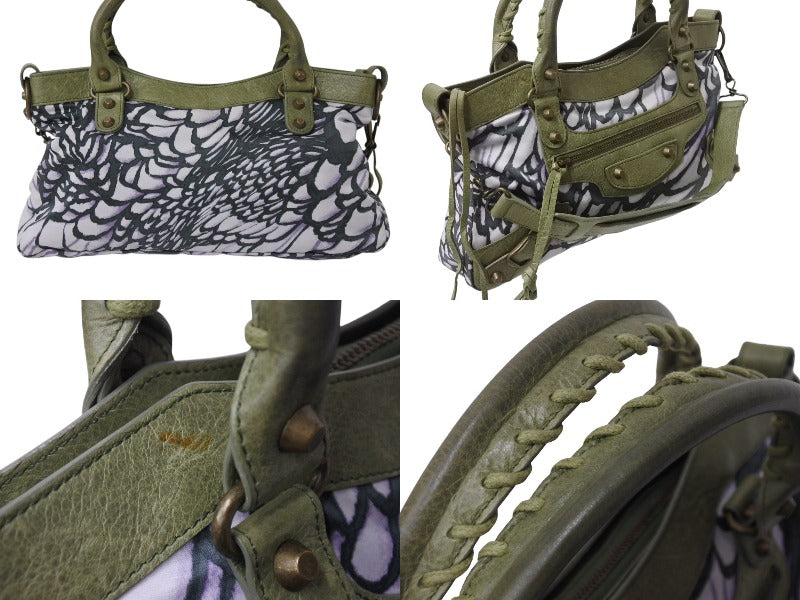 BALENCIAGA バレンシアガ 花柄 The City ザシティ 2WAY ハンドバッグ レザー ナイロン グリーン ワンショルダー 良品 中古 4b003730