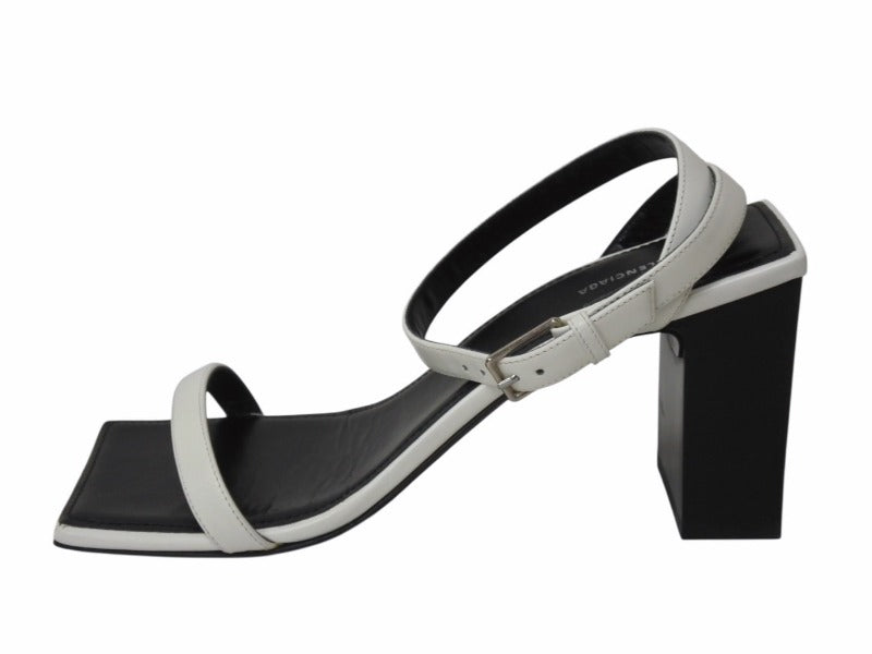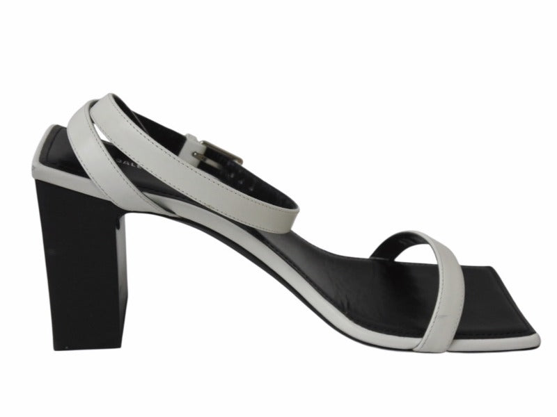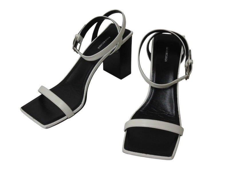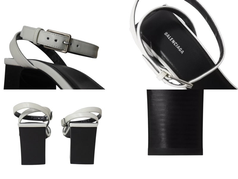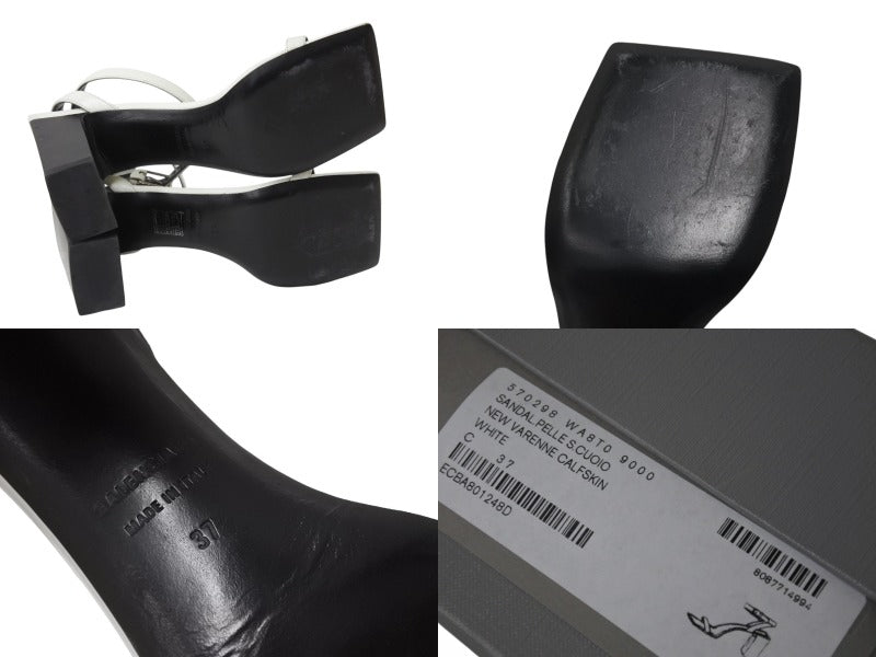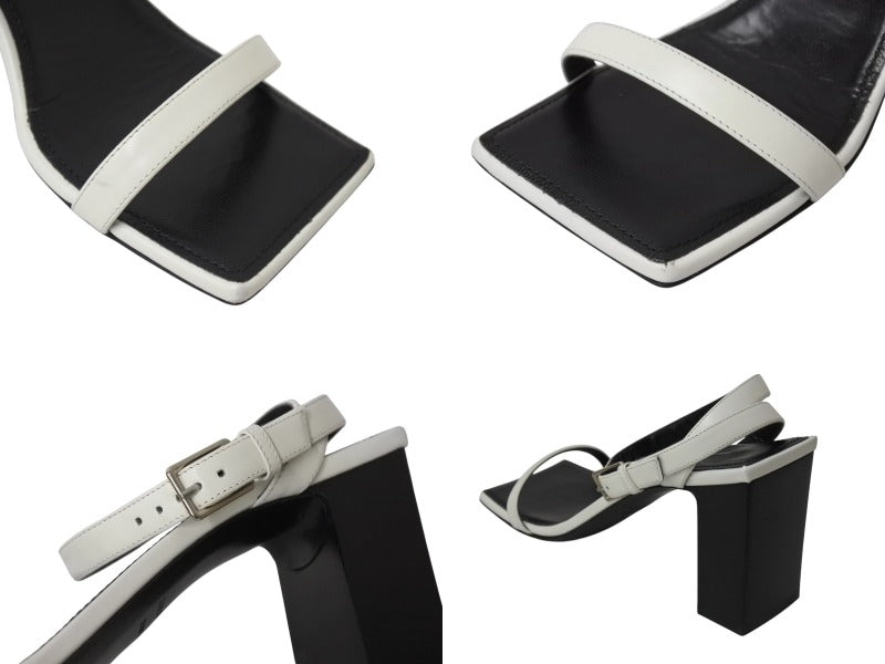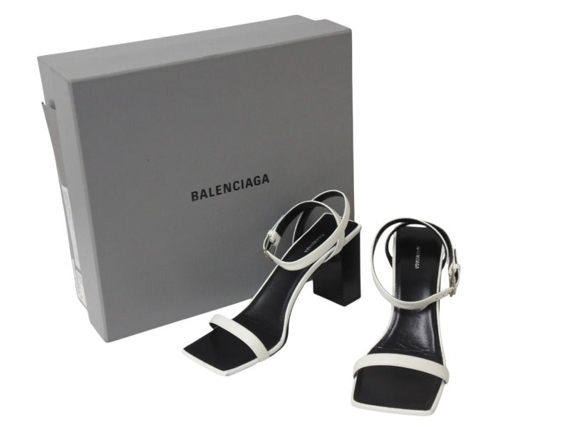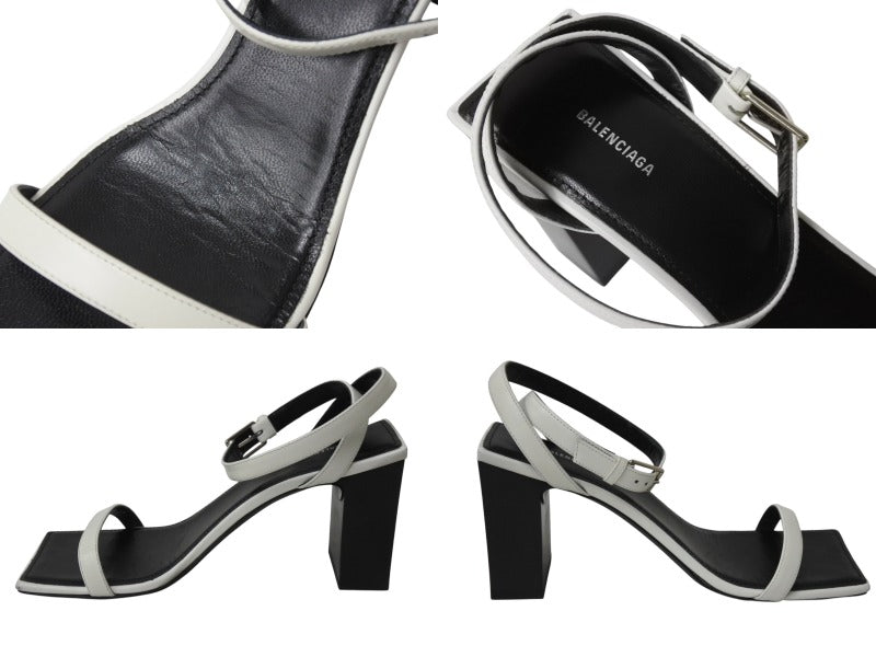 極美品 BALENCIAGA バレンシアガ スクエア サンダル 570298 イタリア製 レザー ホワイト ブラック サイズ37 中古 4b004513