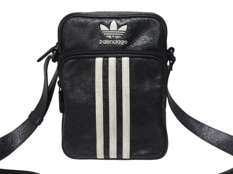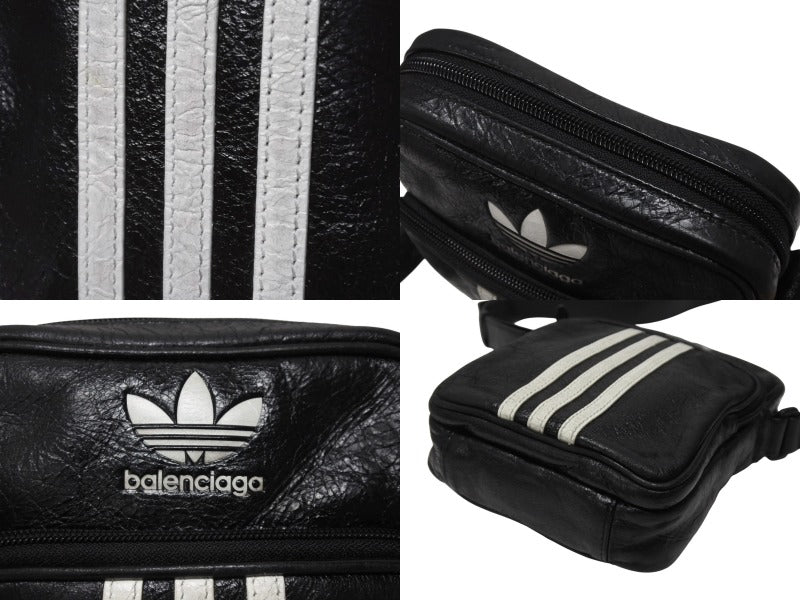 BALENCIAGA × adidas バレンシアガ アディダス コラボ スモール クロスボディ ショルダーバッグ ブラック ラムスキン ロゴ 721850 美品 中古 4b005060