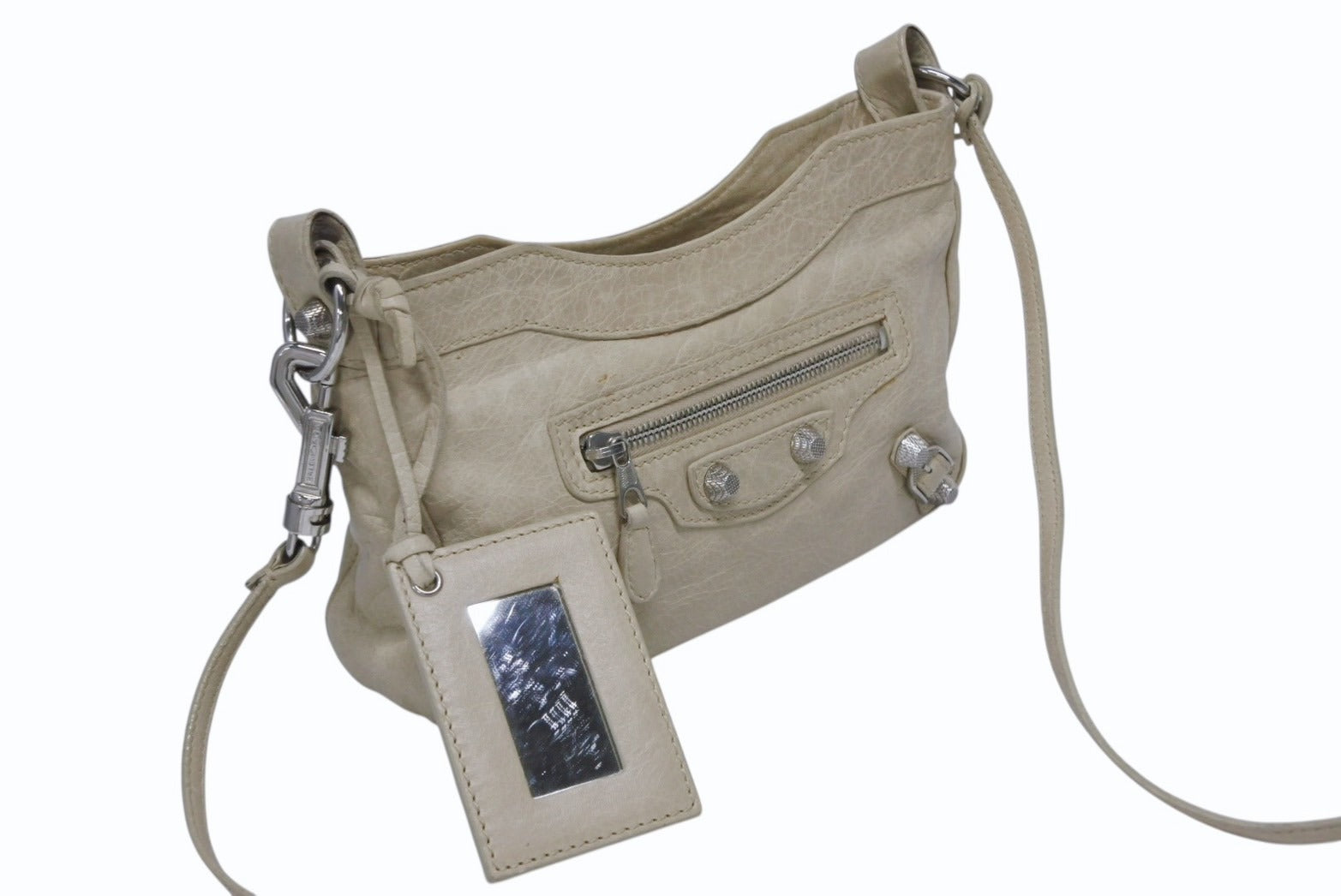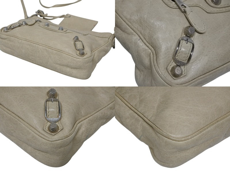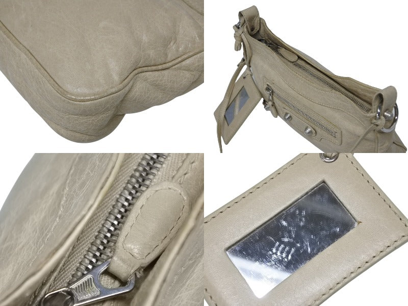 BALENCIAGA バレンシアガ クラシック ザ ヒップ ショルダーバッグ 002123 レザー ベージュ 美品 中古 4b010068