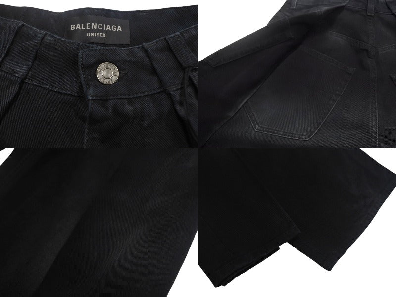 BALENCIAGA バレンシアガ デニムパンツ 23AW DOUBLE TROUSERS 767983 XSサイズ ブラック 美品 中古 4c067885