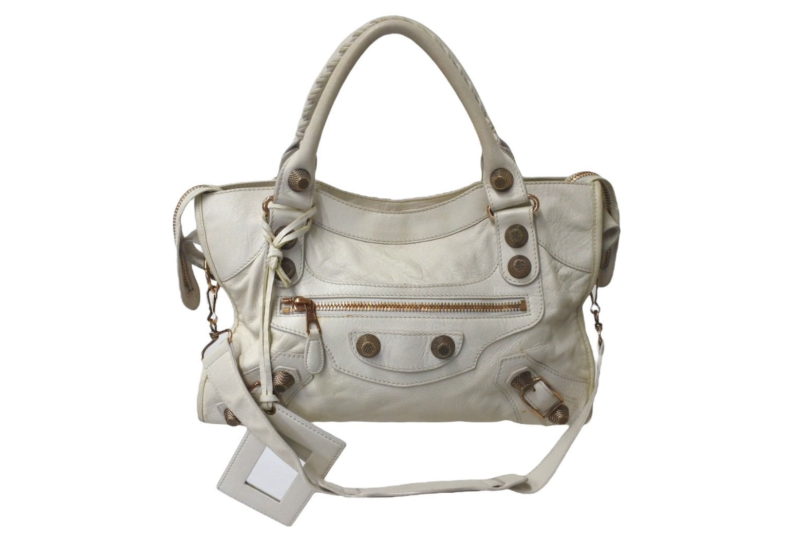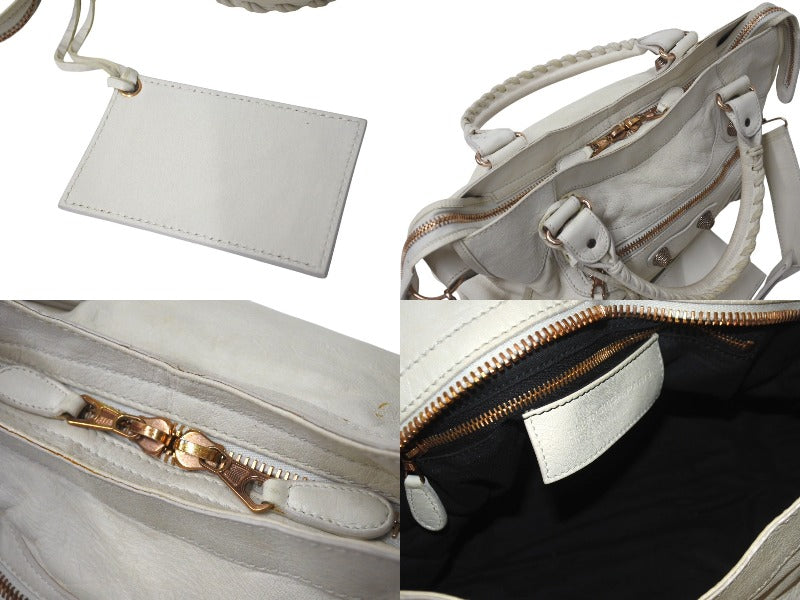 BALENCIAGA バレンシアガ ザ ジャイアント シティ 2WAY ハンドバッグ ホワイト カーフ 173084 良品 中古 4c076369