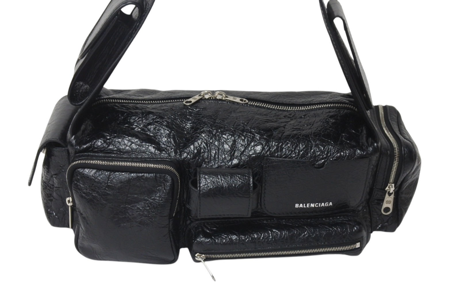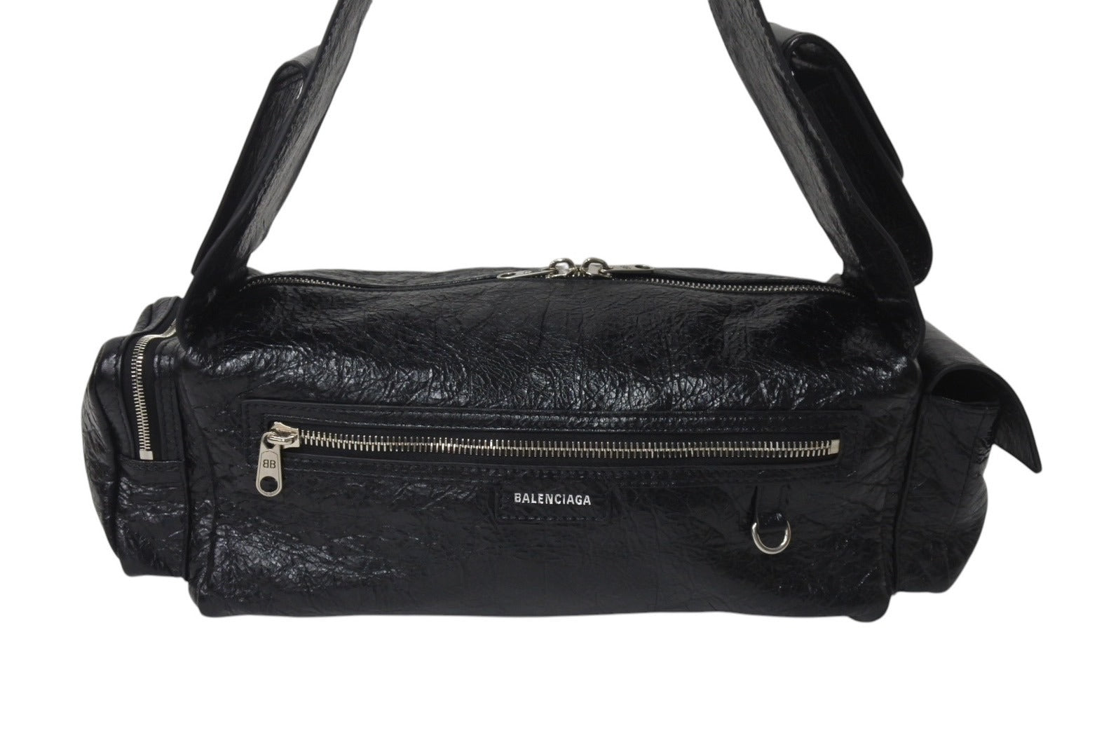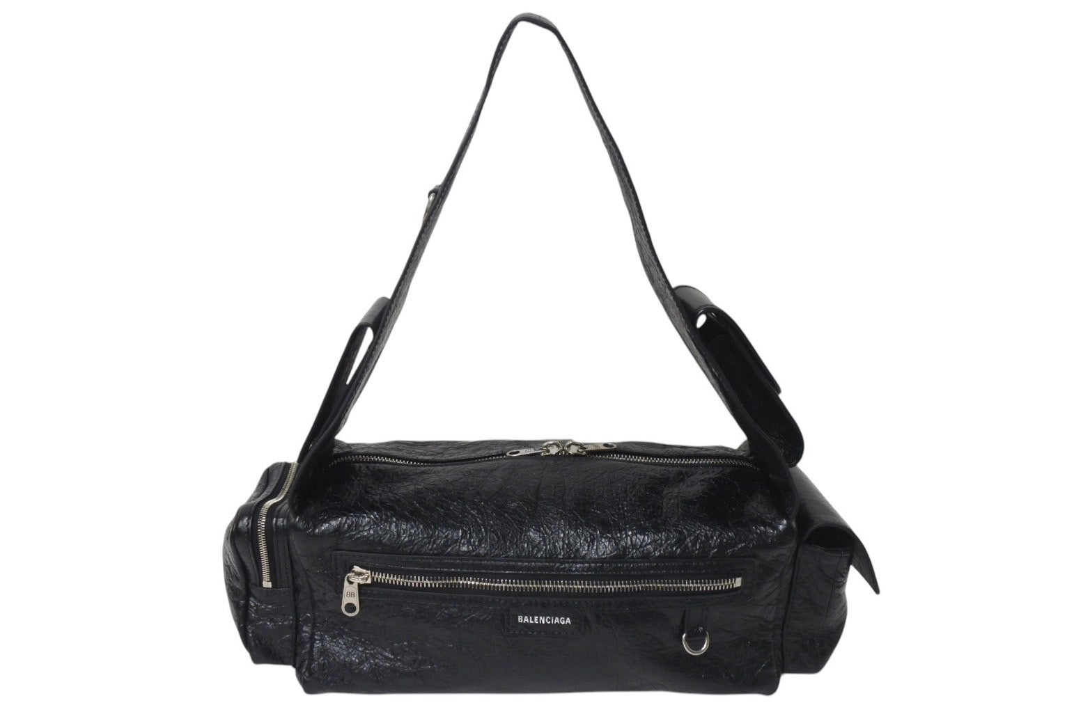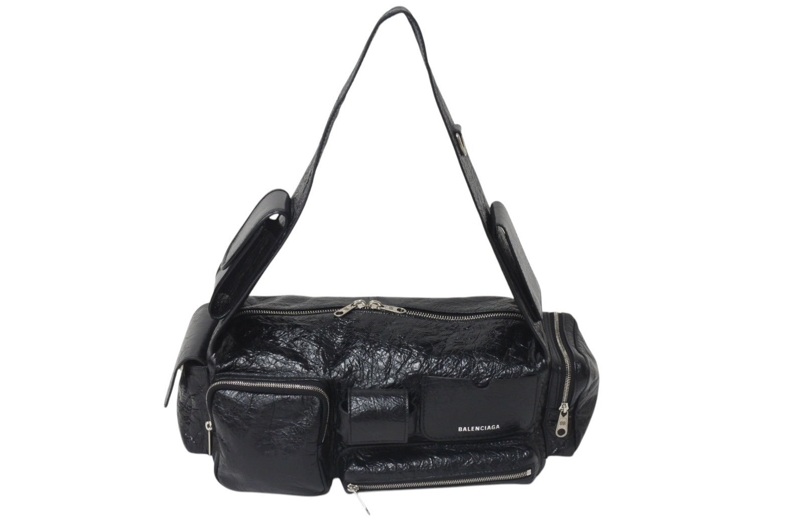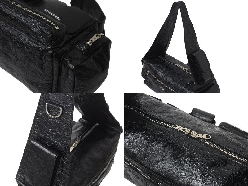 説明シボ加工を施した柔らかなラムスキンを使用しクールに仕上がった、バレンシアガ「スーパービジィ スモール スリングバッグ」ショルダーバッグ。