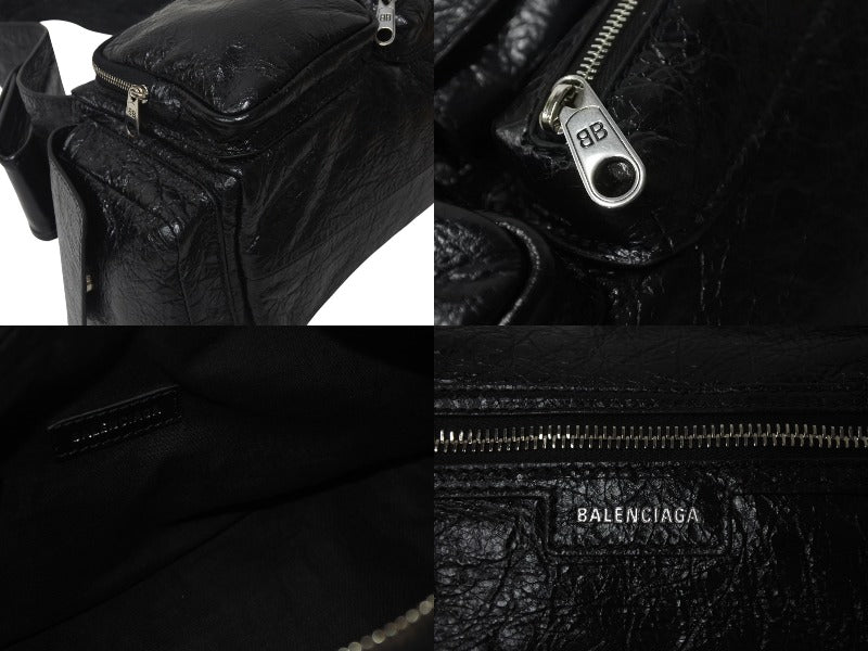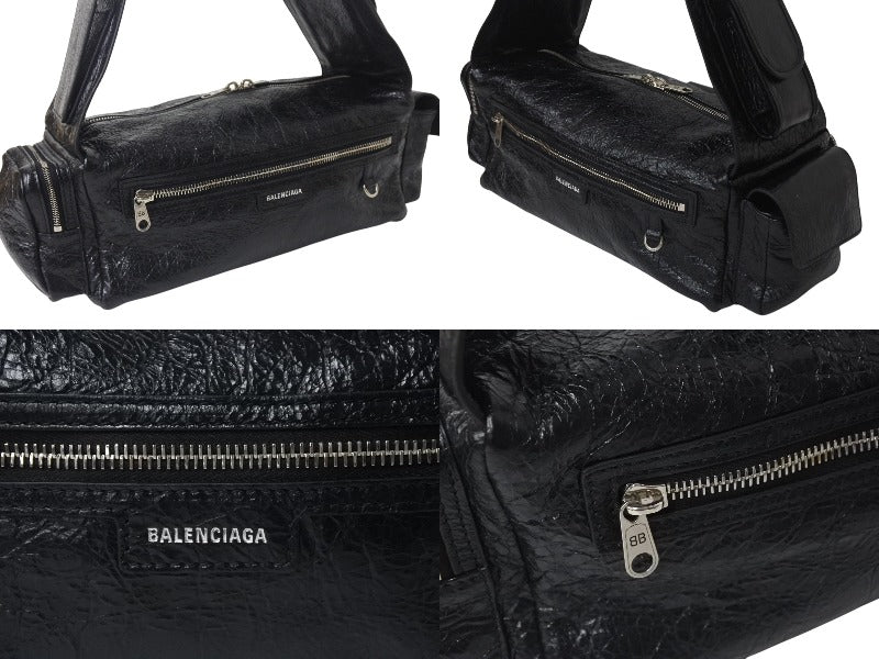 極美品 BALENCIAGA バレンシアガ スーパービジィ スモール スリングバッグ アリーナラムスキン 702167・1000・N527277 ブラック 中古 4c076535