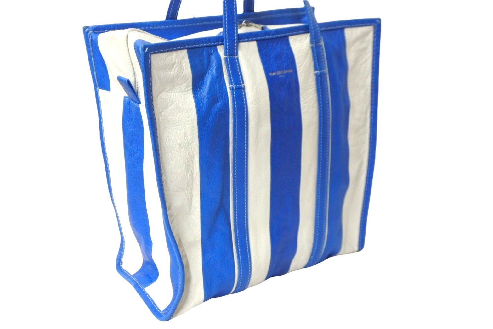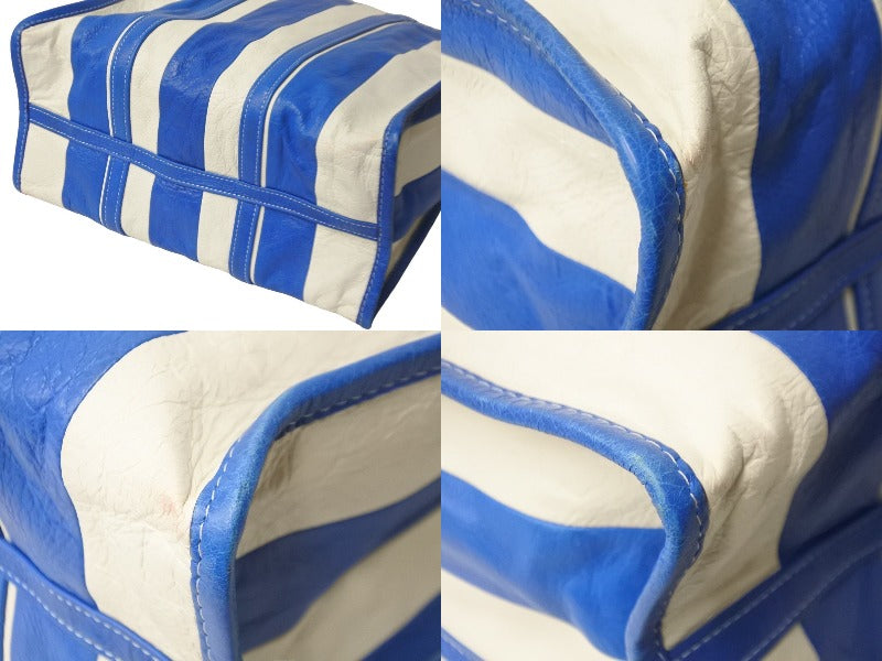 BALENCIAGA バレンシアガ バザールショッパーM レザー トートバッグ ブルー ホワイト 443097 鞄 ロゴ 良品 中古 57393