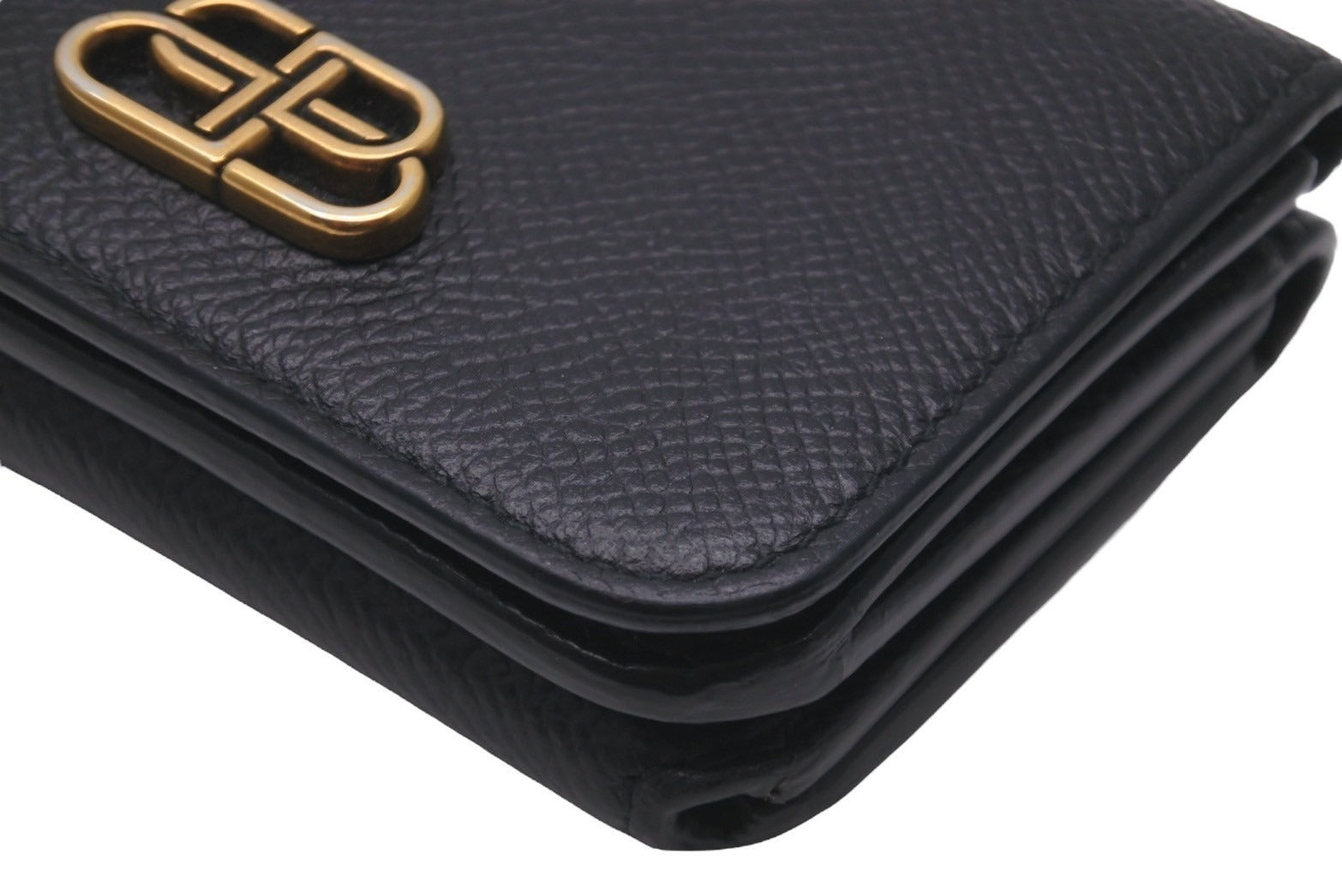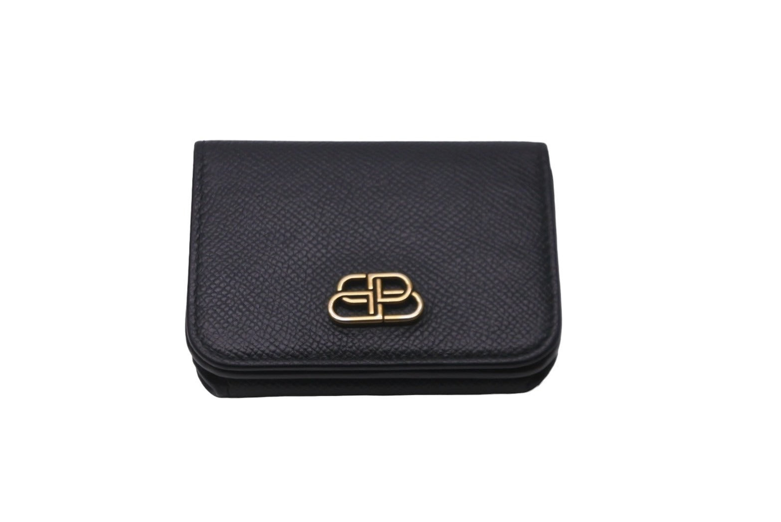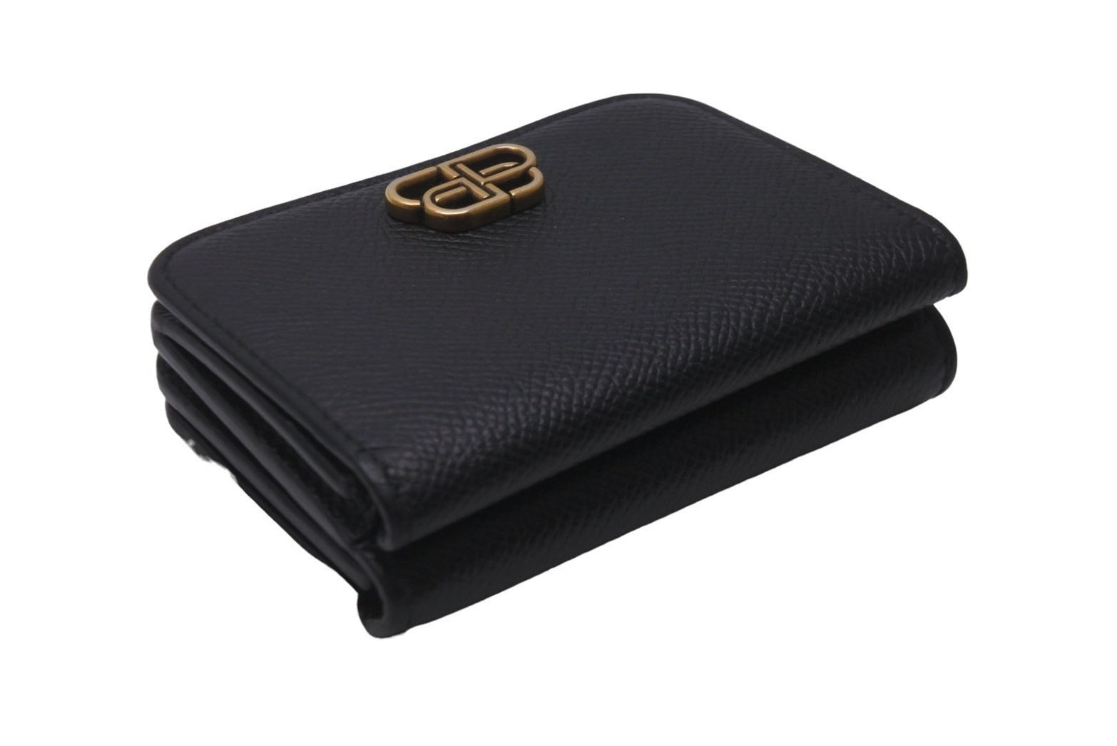 BALENCIAGA バレンシアガ 三つ折り財布 ミニウォレット BB ロゴ ブラック 601387 レザー ゴールド金具 良品 中古 59848
