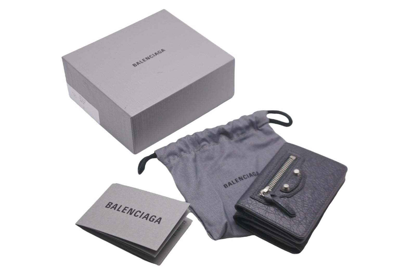 カーフレザーにバレンシアガのロゴの刻印やスタッズとファスナーモチーフを組み合わせた「ネオ クラシック ミニ ウォレット」スナップ式三つ折り財布です。