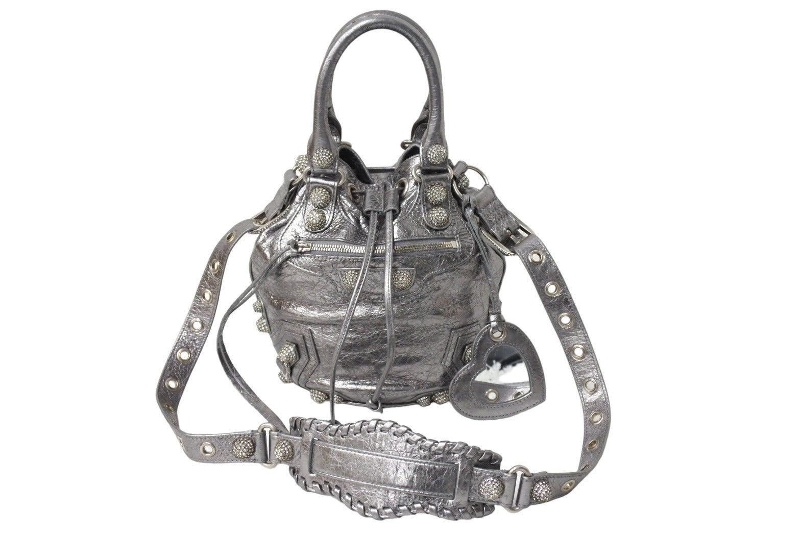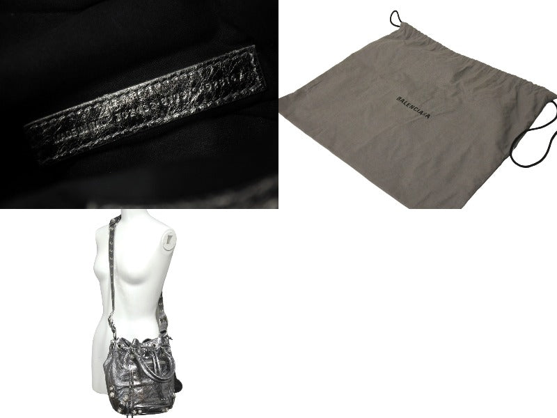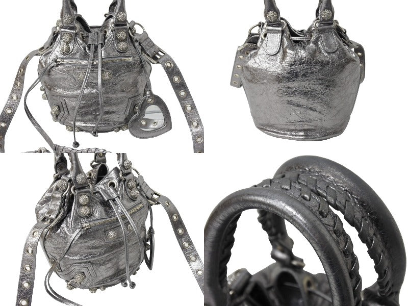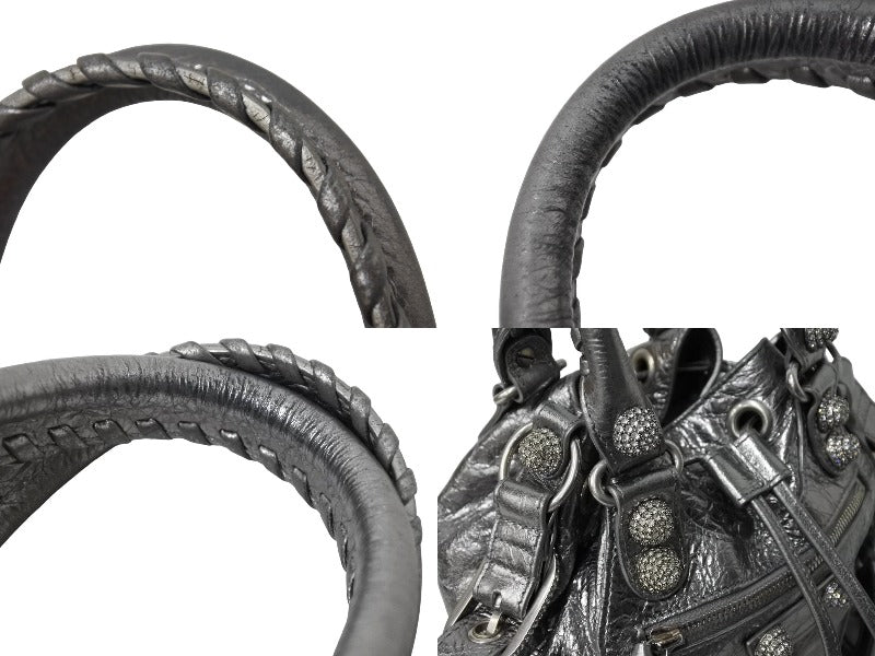 極美品 BALENCIAGA バレンシアガ ルカゴールXS 2WAYハンドバッグ 702432 アリーナラムスキン ラインストーン シルバー 中古 66215