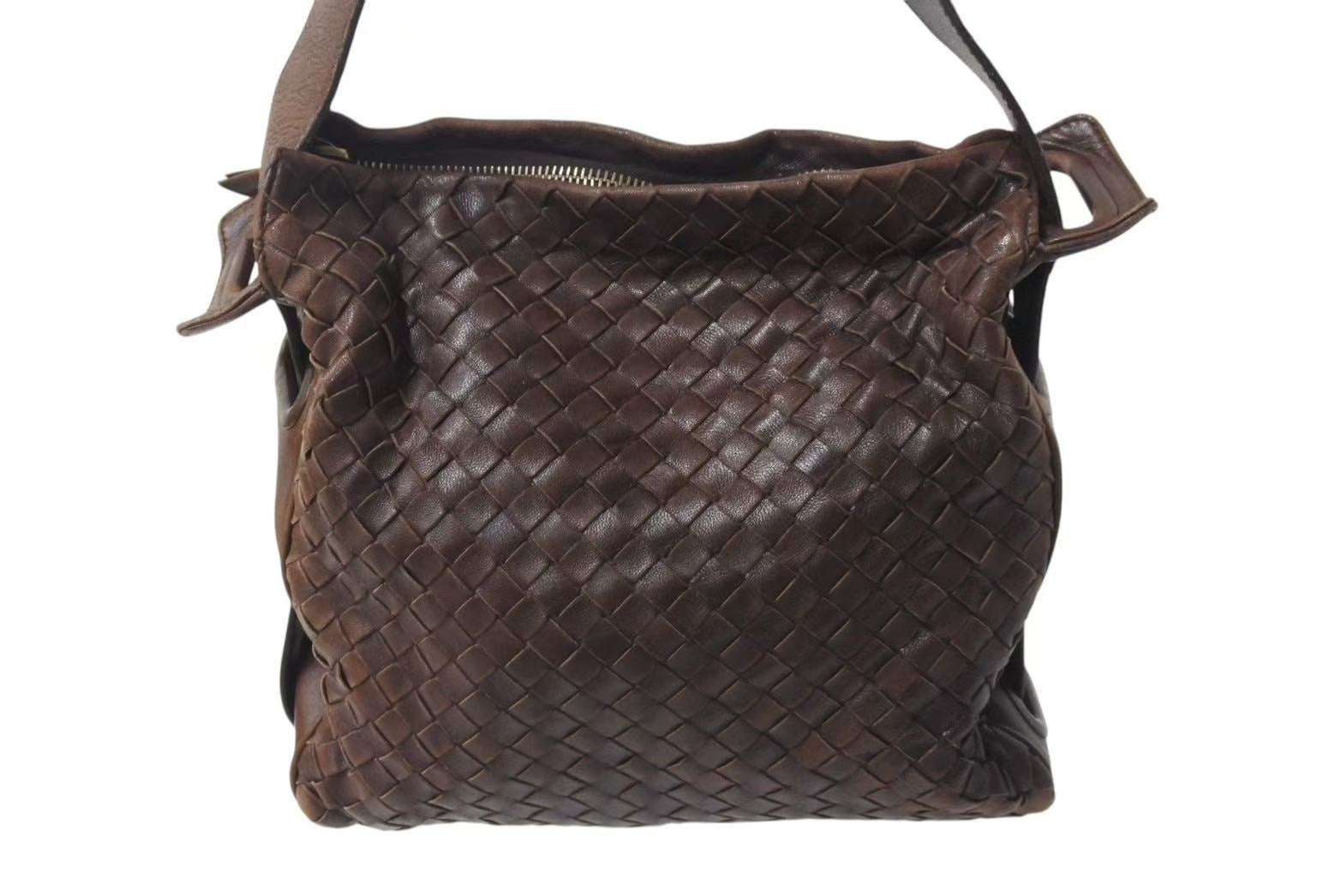 BOTTEGAVENETA ボッテガヴェネタ イントレチャート ナッパ ハンドバッグ ブラウン レザー 良品 中古 4b000155