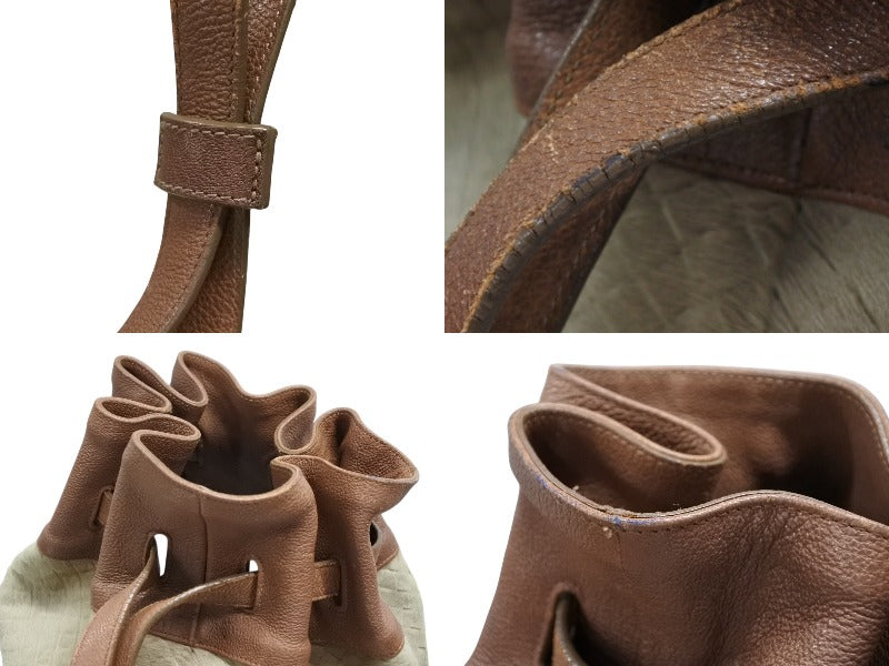レザー部分にスレあり。ハラコ 部分に変色、少々汚れあり。金具にスレ、小傷あり。内側汚れあり。ショルダーストラップにスレあり。その他使用感の少ない状態です。