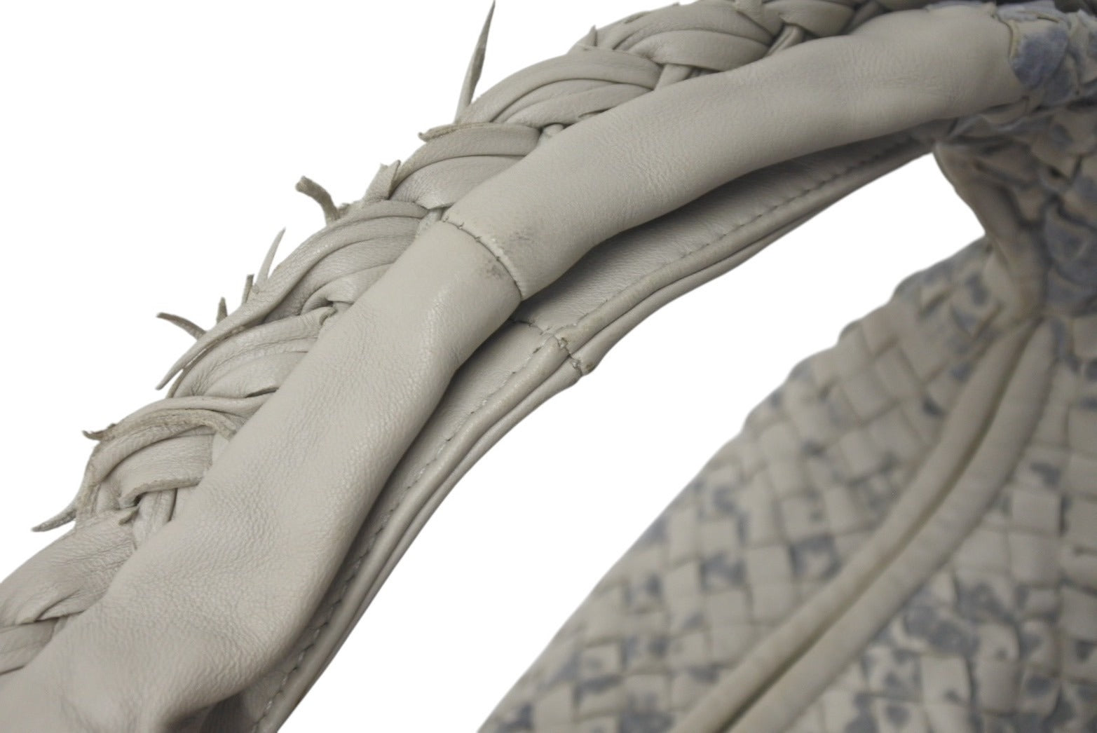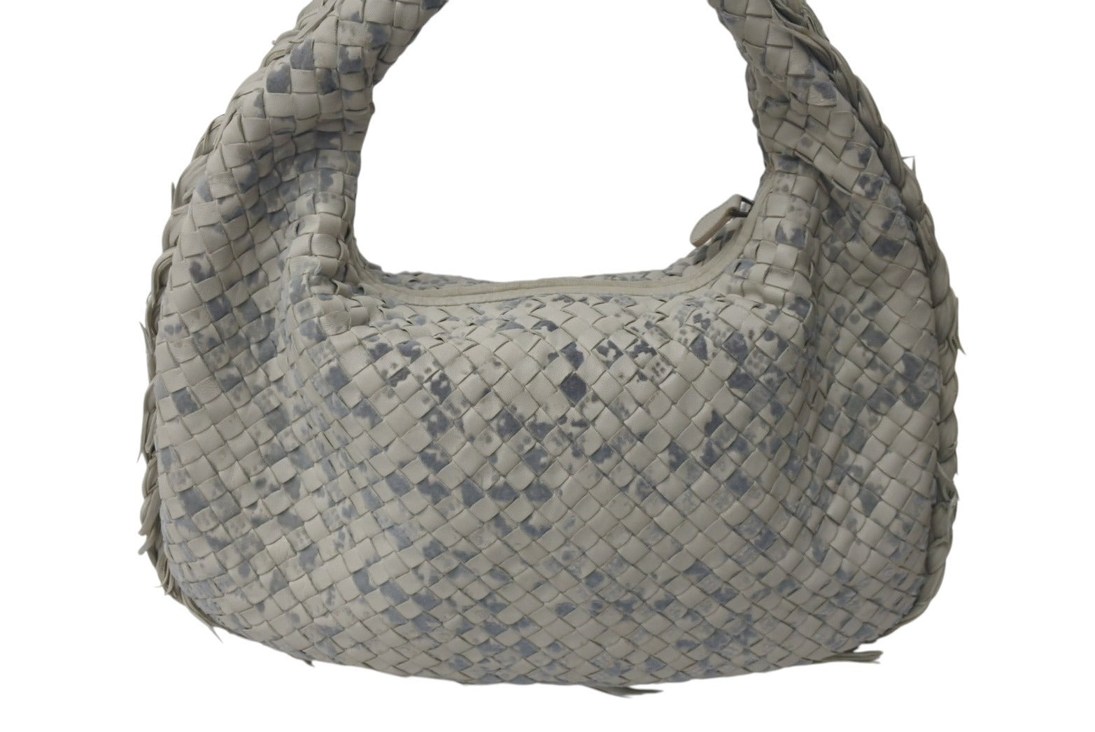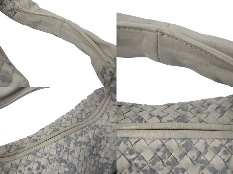 極美品 BOTTEGAVENETA ボッテガヴェネタ ショルダーバッグ イントレチャート フリンジ ホーボー レザー アイボリー 中古 4c075652