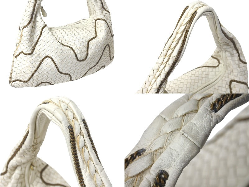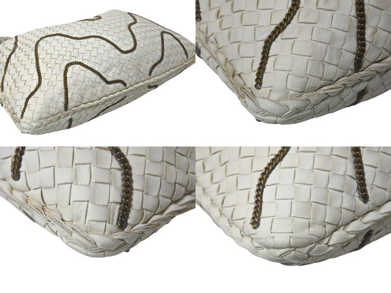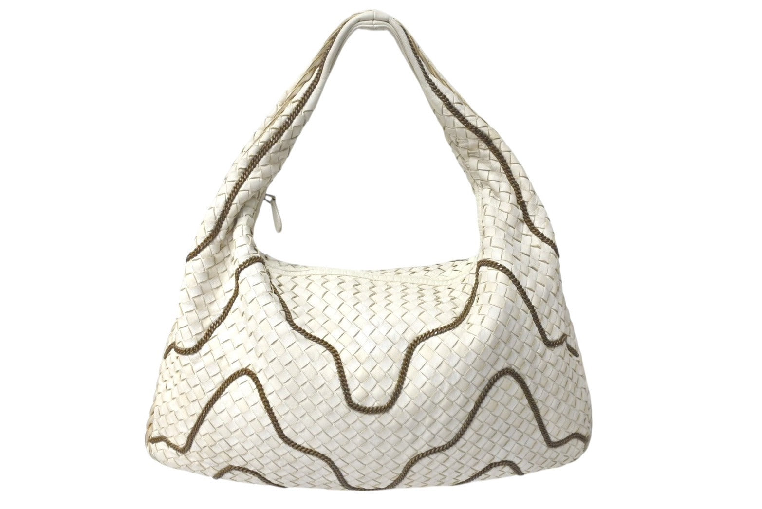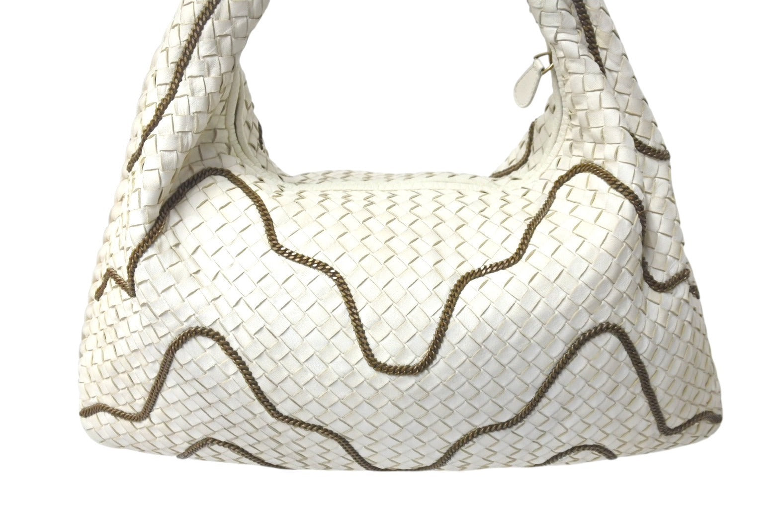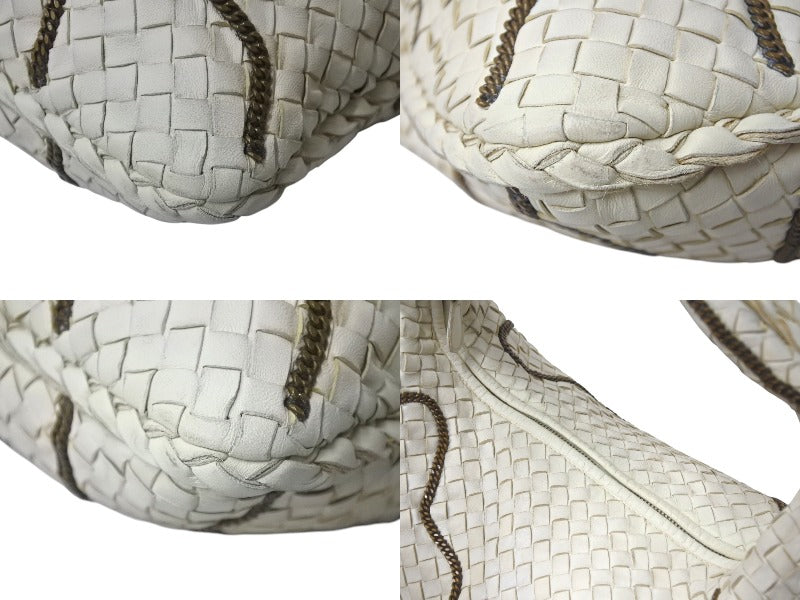 BOTTEGA VENETA ボッテガヴェネタ ホーボー イントレチャート ワンショルダーバッグ 169867 ホワイト 美品 中古 4c076396