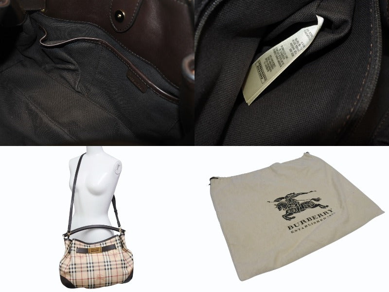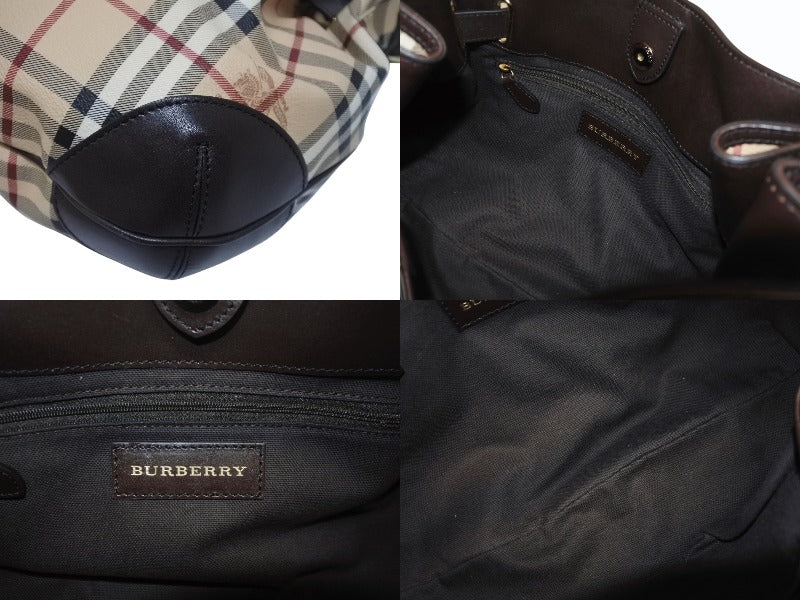 BURBERRY バーバリー ノバチェック 2WAY ハンドバッグ ベージュ ブラウン PVC レザー ショルダー 3742238 ゴールド金具 美品 中古 4b005299