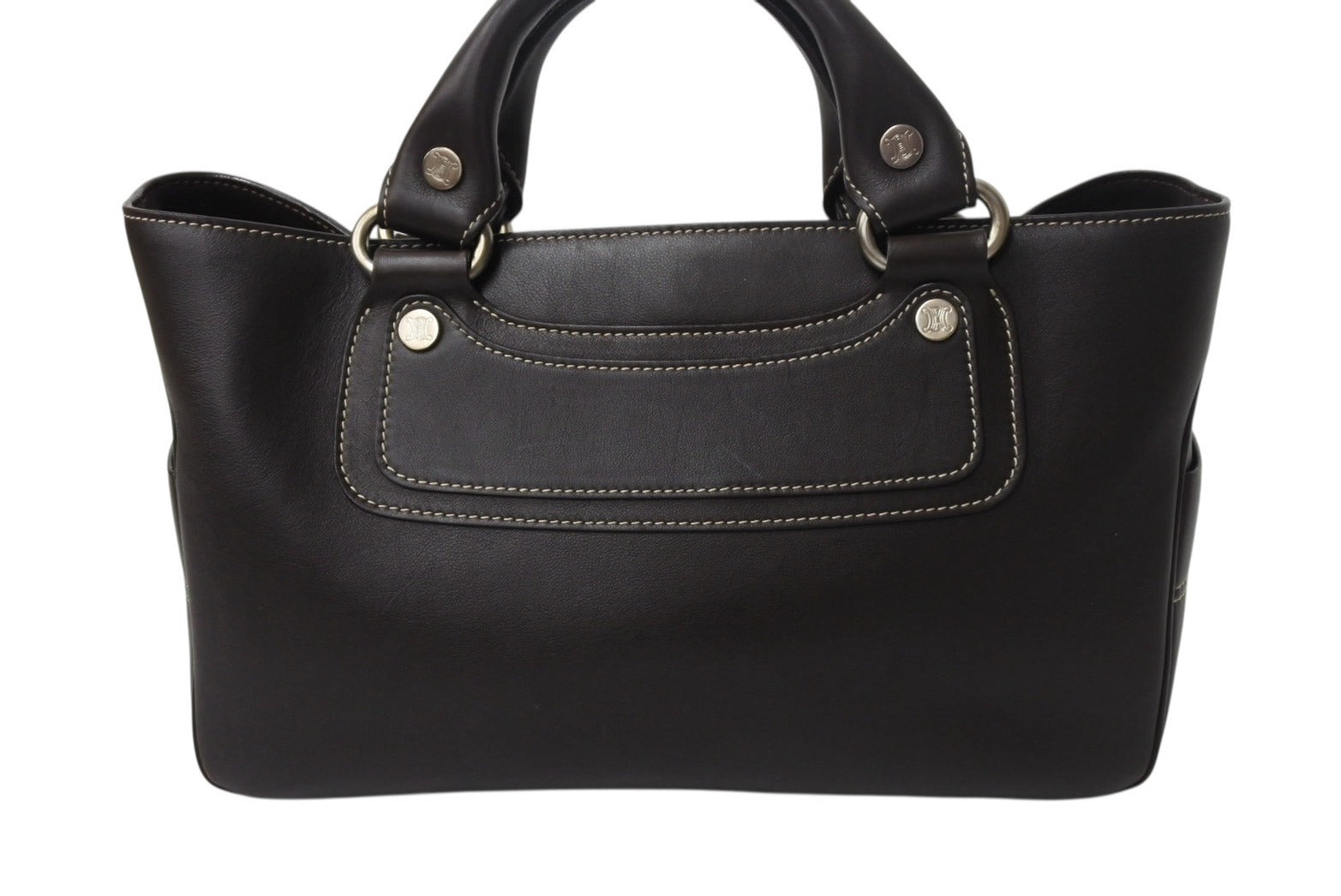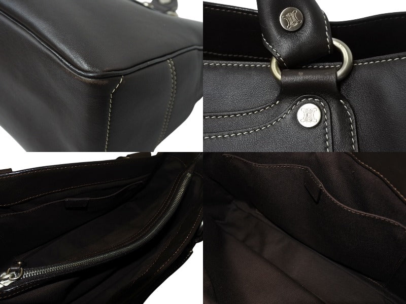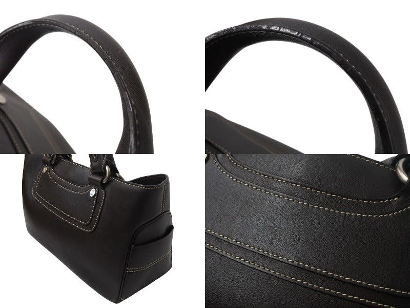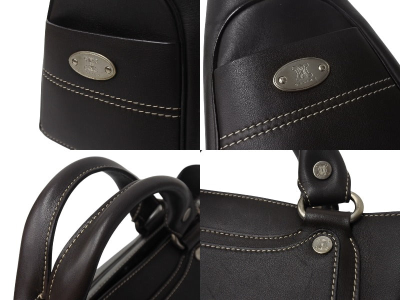 CELINE セリーヌ ハンドバッグ CE00/35 ブラウン レザー シルバー金具 イタリア製 美品 中古 4b001758