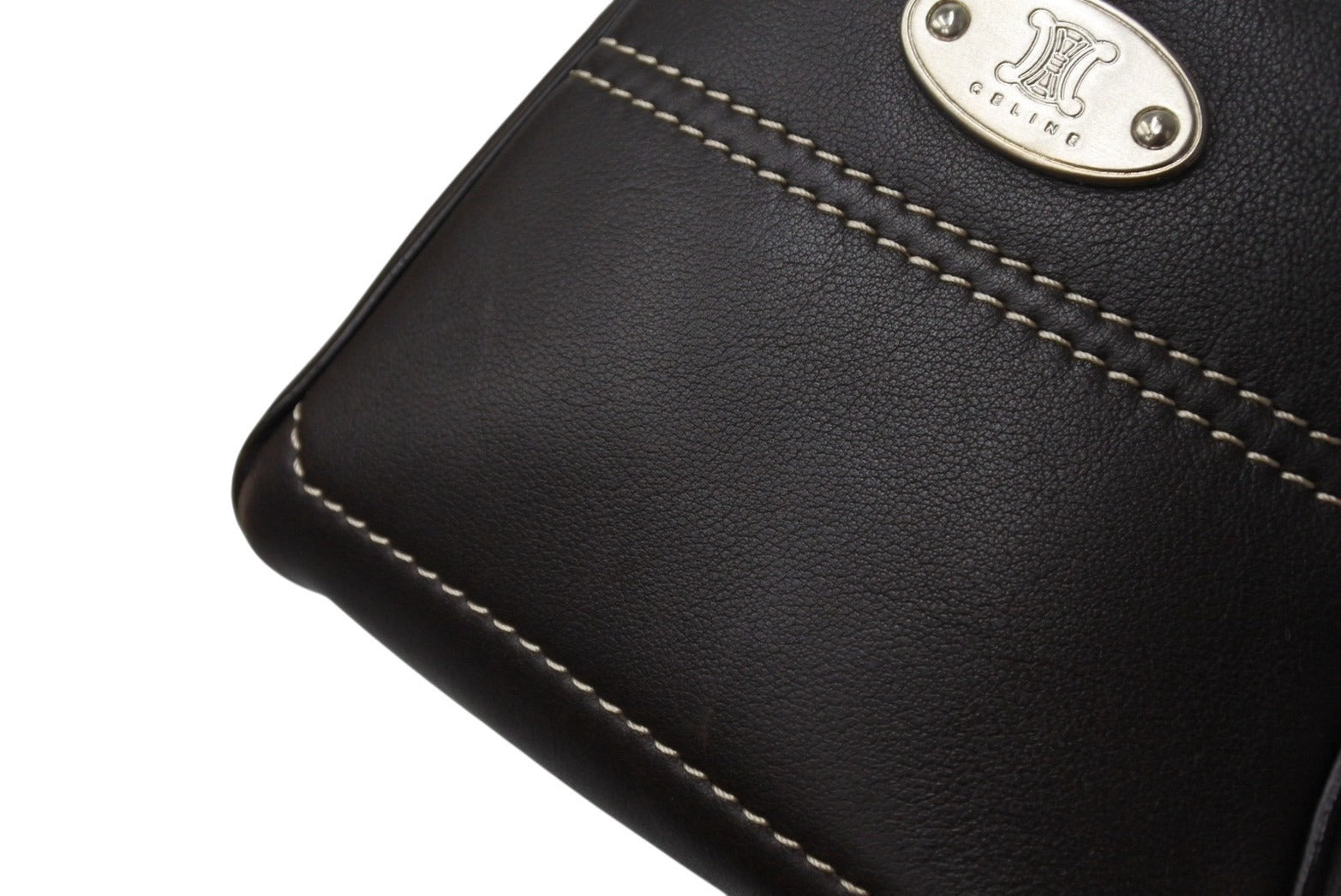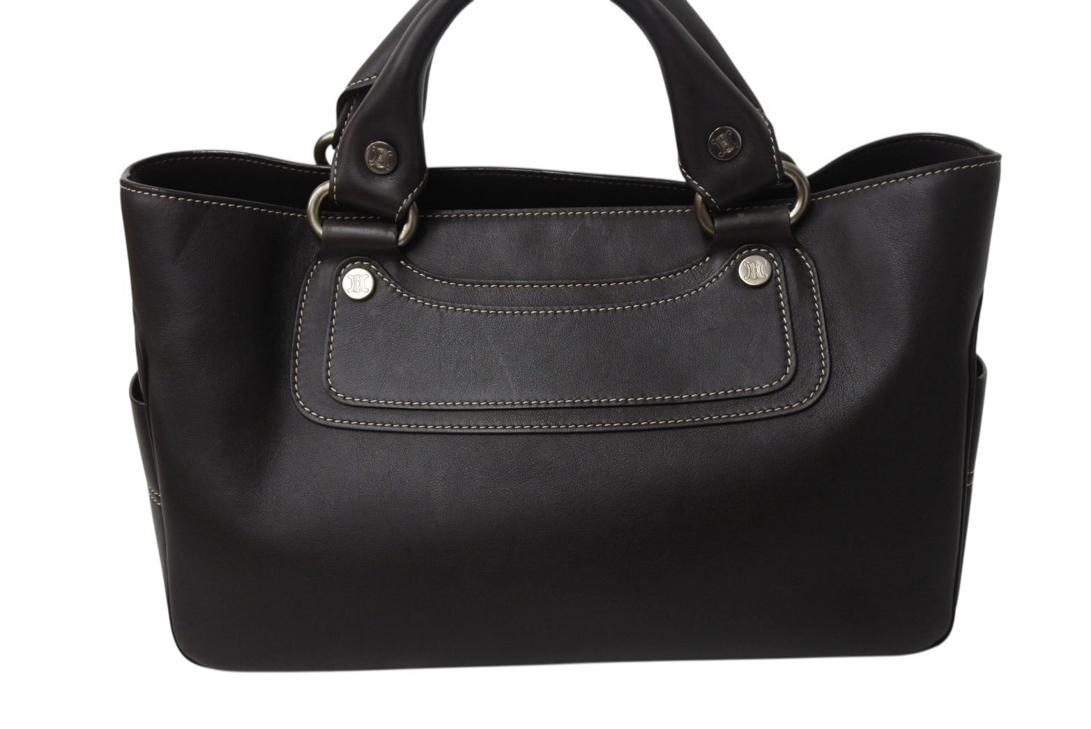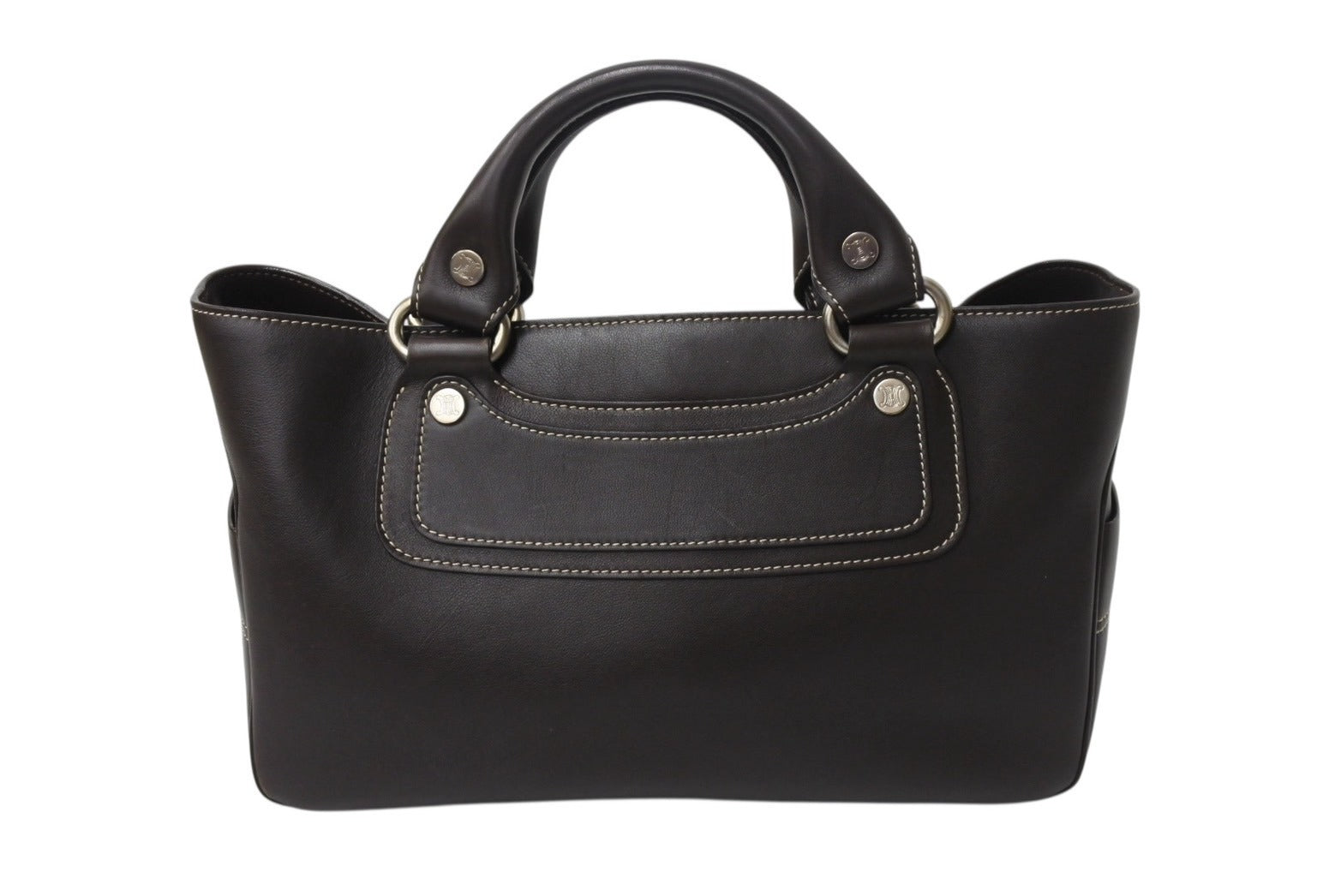 CELINE セリーヌ ハンドバッグ CE00/35 ブラウン レザー シルバー金具 イタリア製 美品 中古 4b001758