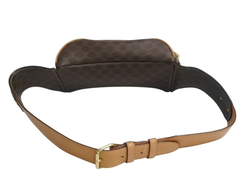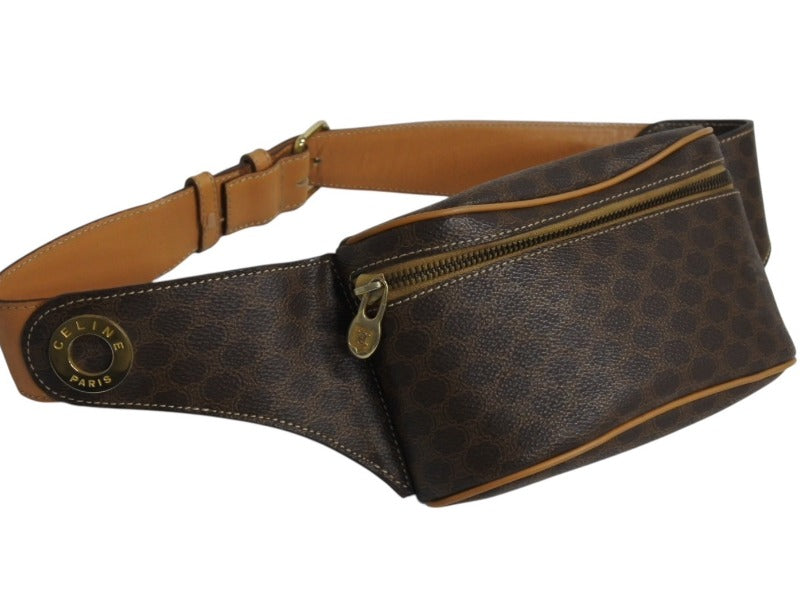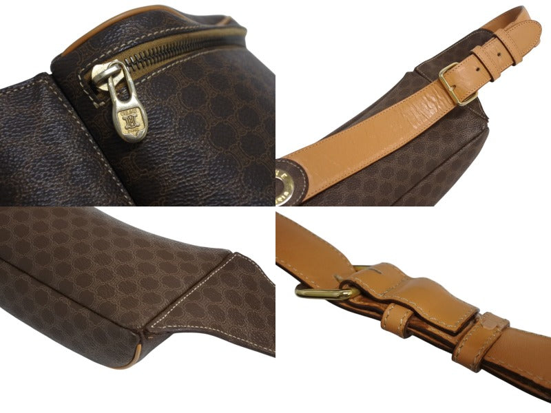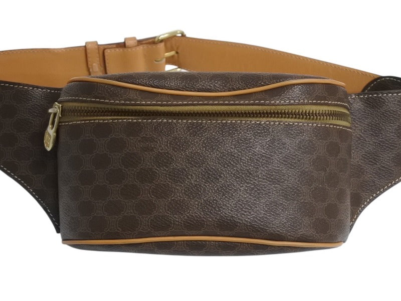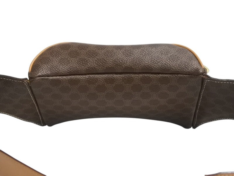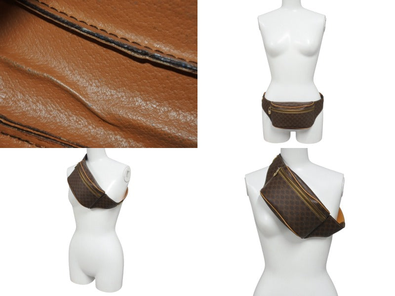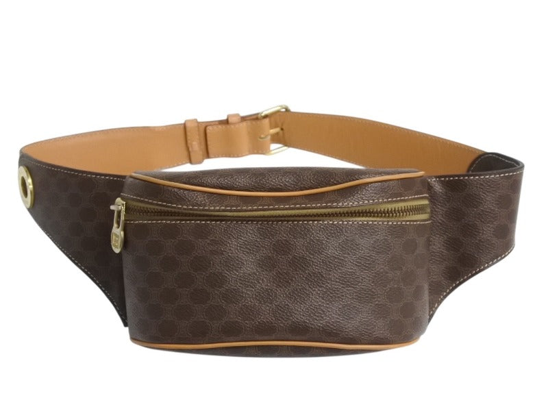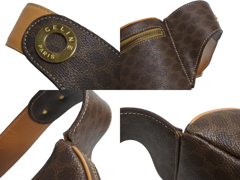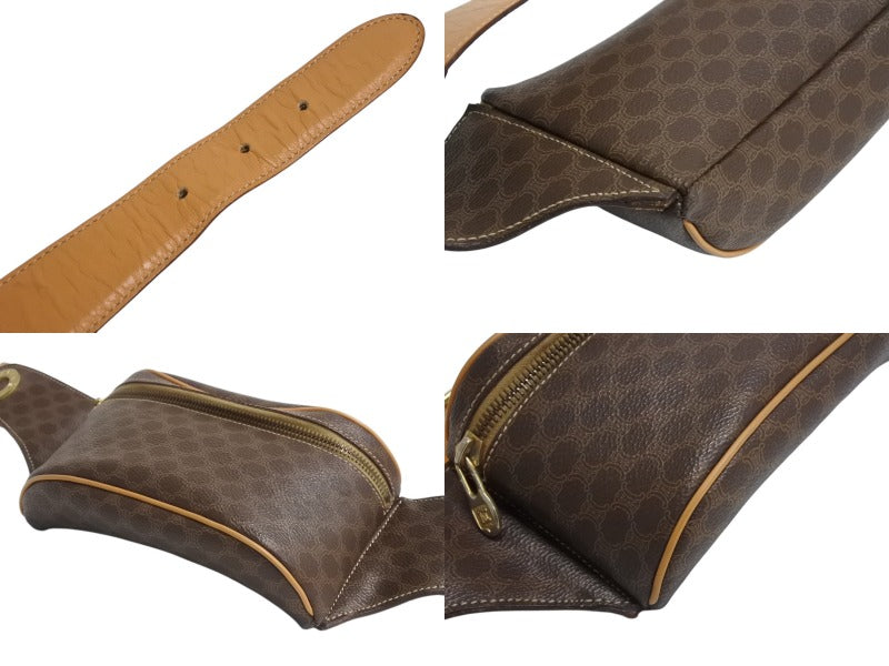 CELINE セリーヌ ウエストバッグ マカダム イタリア製 PVC ヌメ革 ブラウン ゴールド金具 美品 中古 4b002266