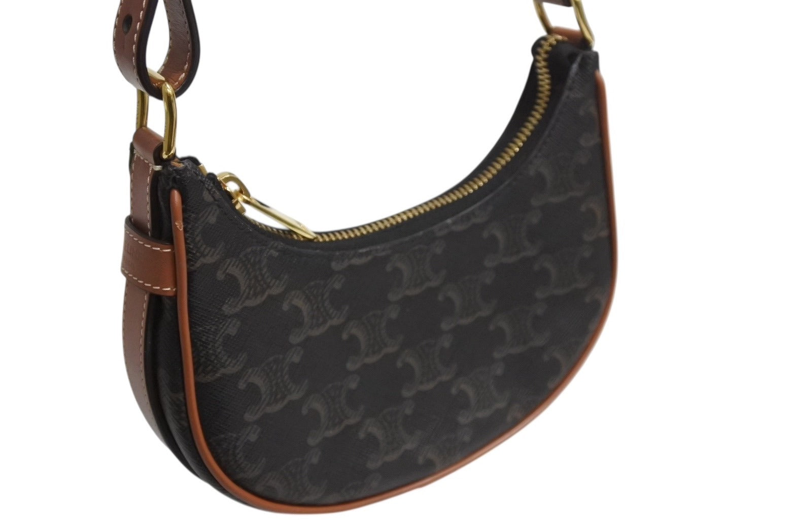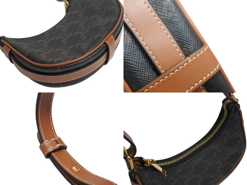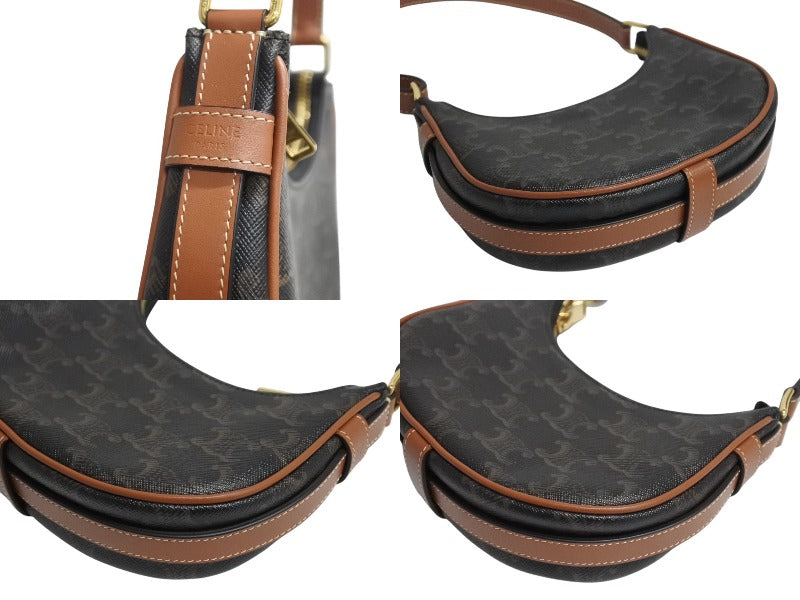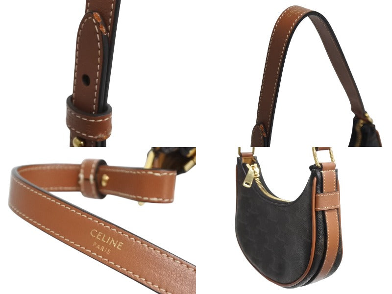 極美品 CELINE セリーヌ AVA アヴァ ミニ トリオンフ ワンショルダーバッグ ブラウン ゴールド金具 中古 4b002333