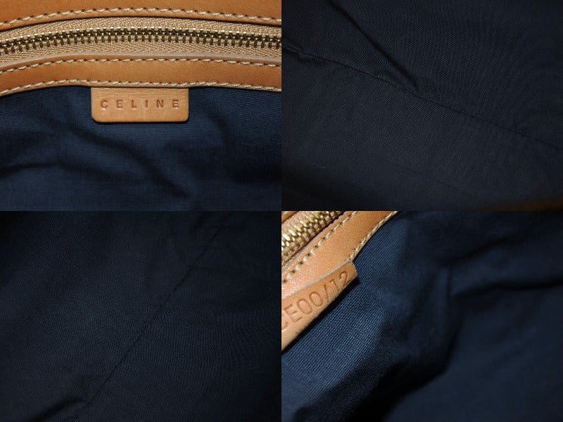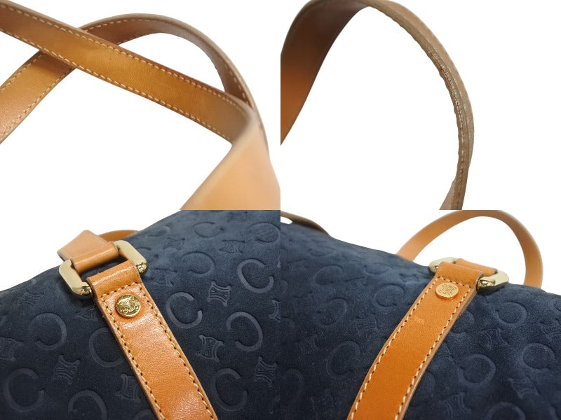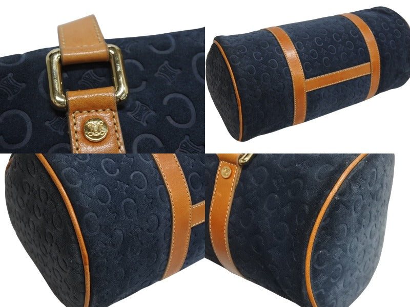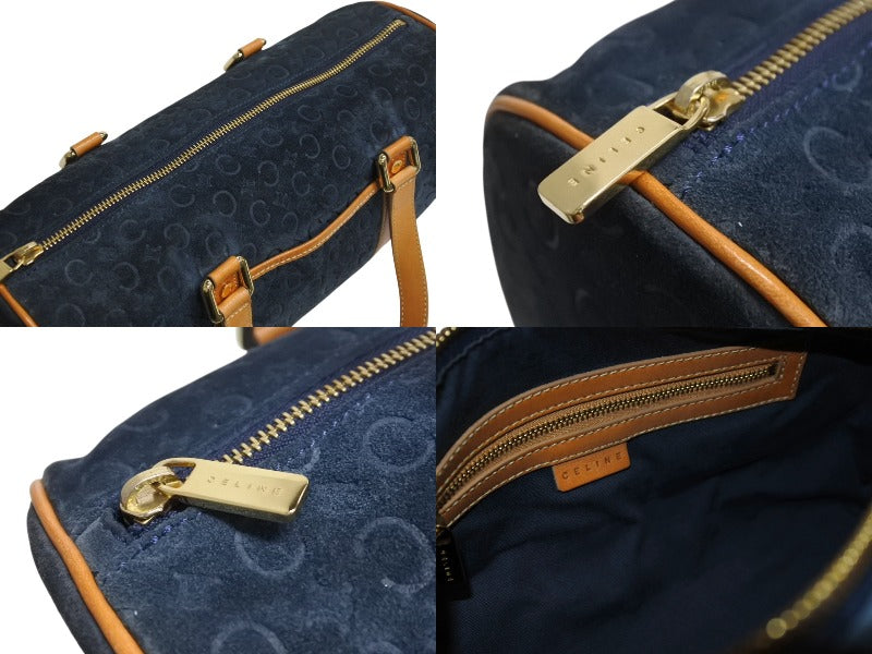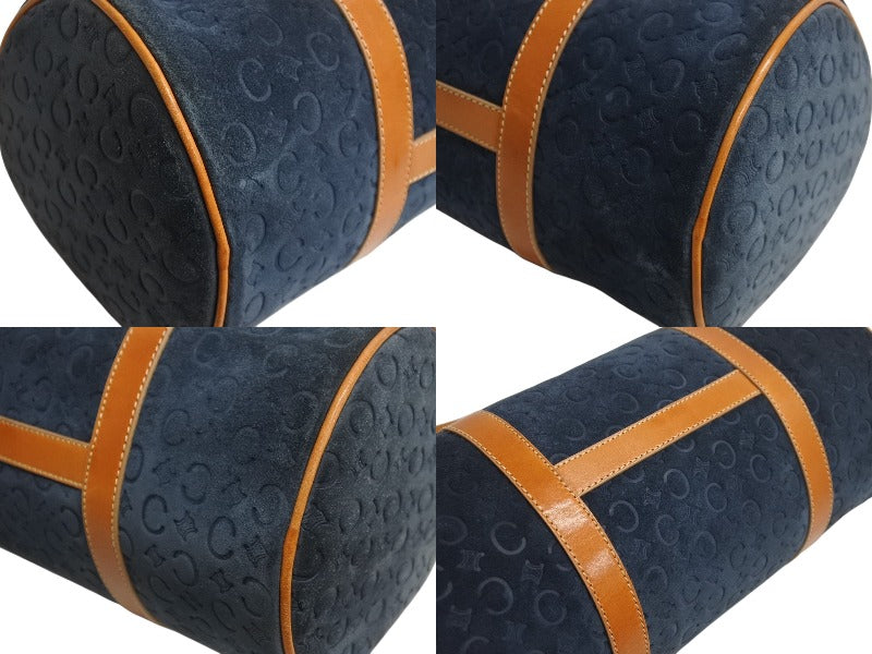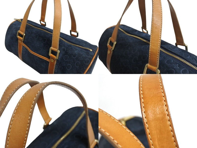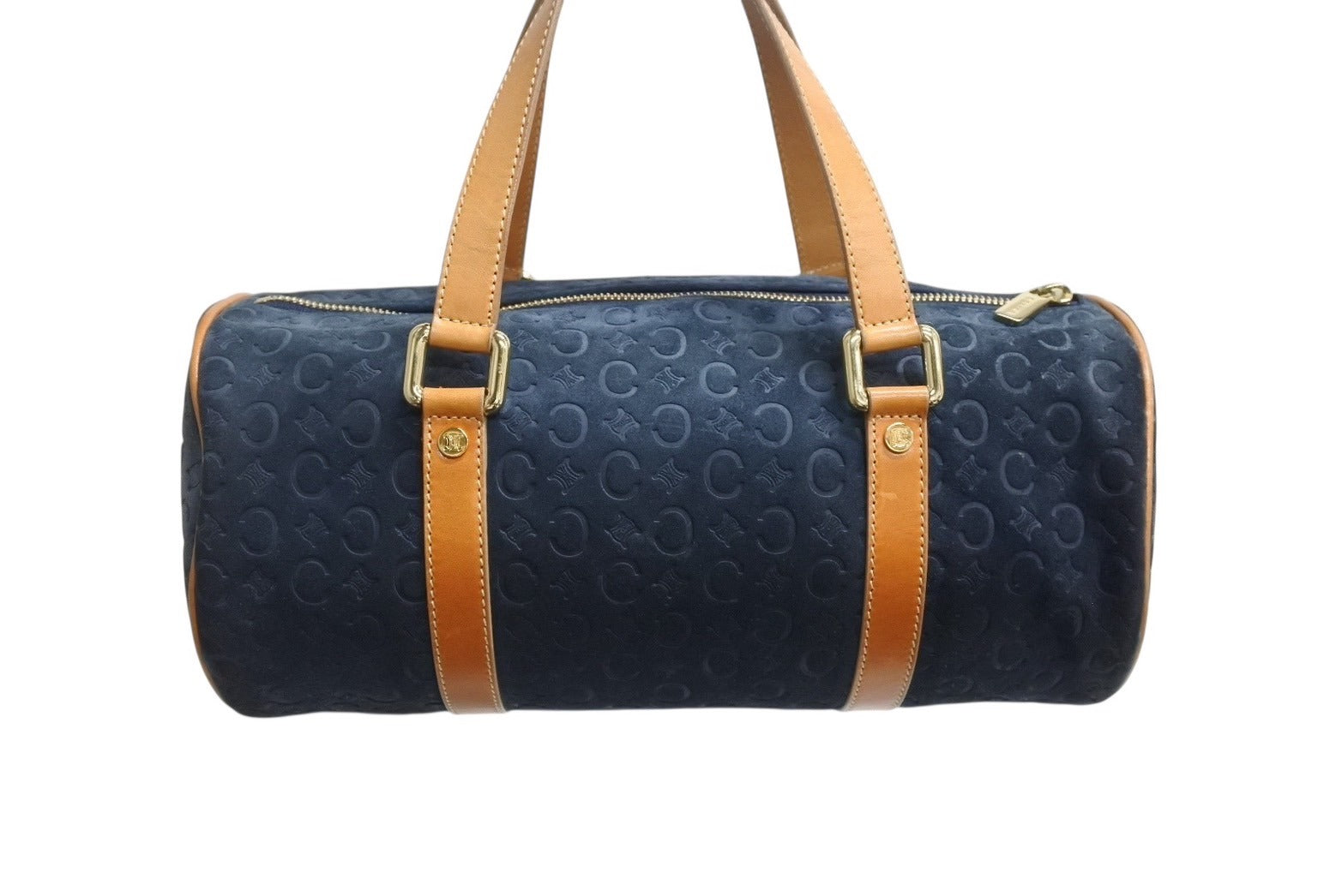 CELINE セリーヌ ハンドバッグ Cマカダム ロゴ金具 筒型 CE00/12 レザー スエード ネイビー ブラウン ゴールド金具 美品 中古 4b002977