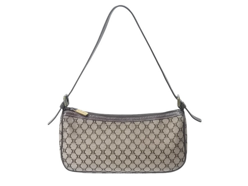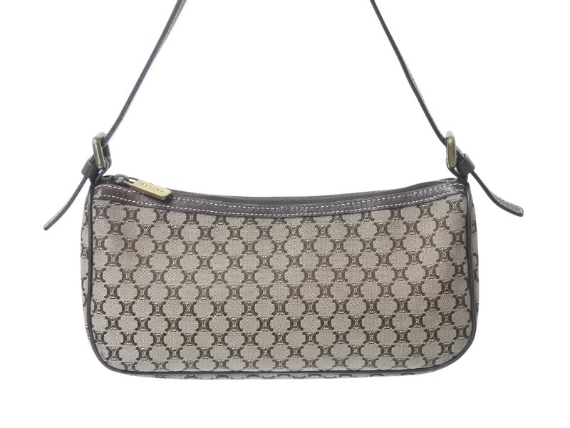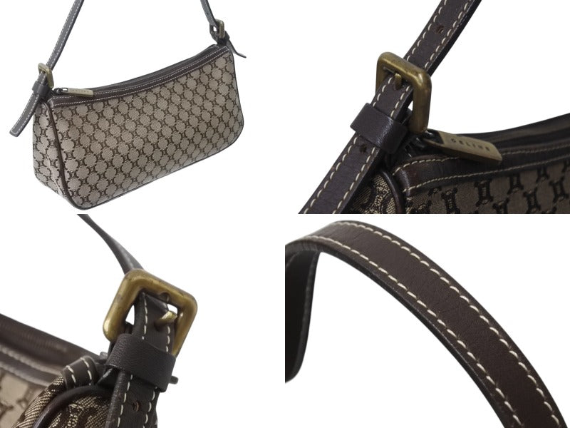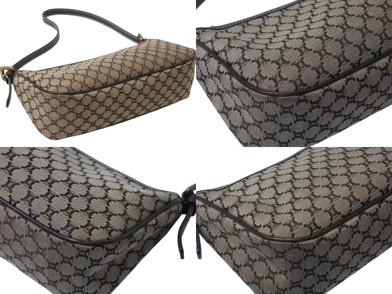極美品 CELINE セリーヌ ワンショルダーバッグ ハンドバッグ マカダム柄 CE00/23 イタリア製 キャンバス レザー ゴールド金具 美品 中古 4b002983