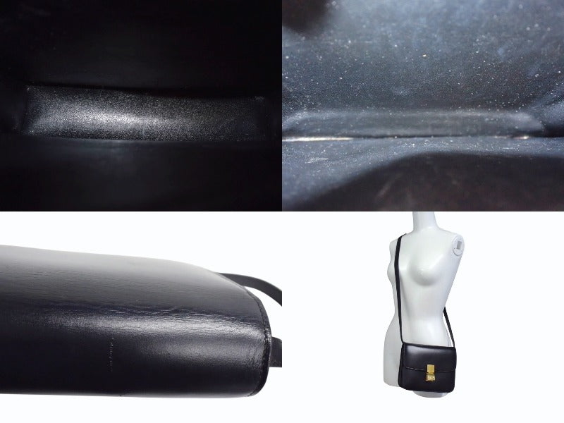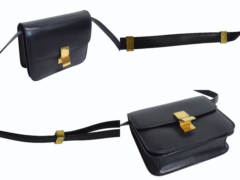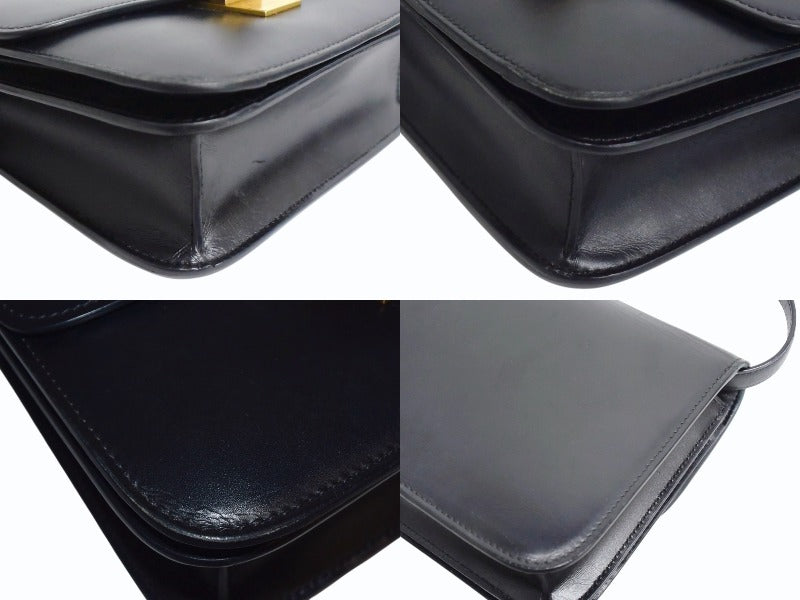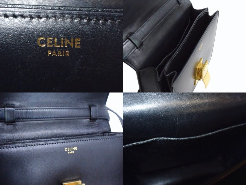 CELINE セリーヌ ショルダーバッグ クラシックボックス ミディアム 189173DLS カーフスキン ブラック ゴールド金具 美品 中古 4b003438