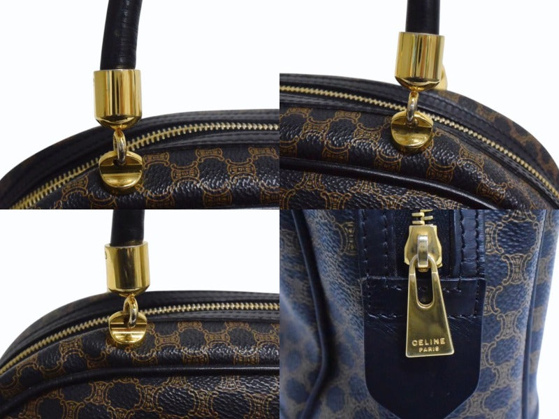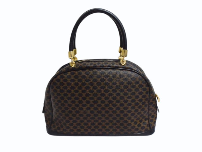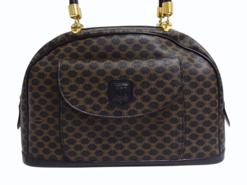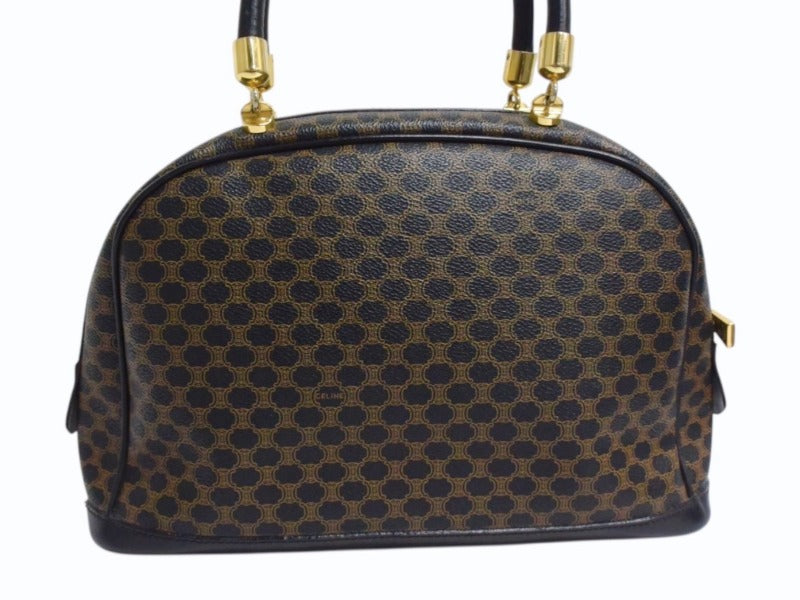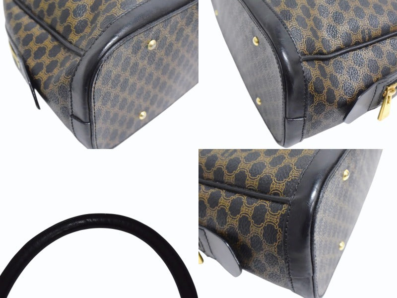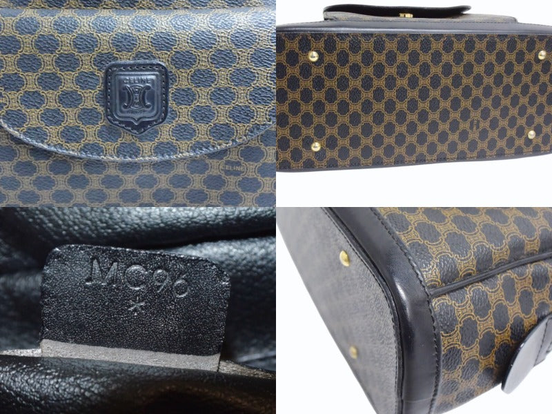 CELINE セリーヌ マカダム柄 ハンドバッグ ブラック ブラウン ミニボストン ロゴ PVC レザー MC96 ゴールド金具 鞄 美品 中古 4b003443