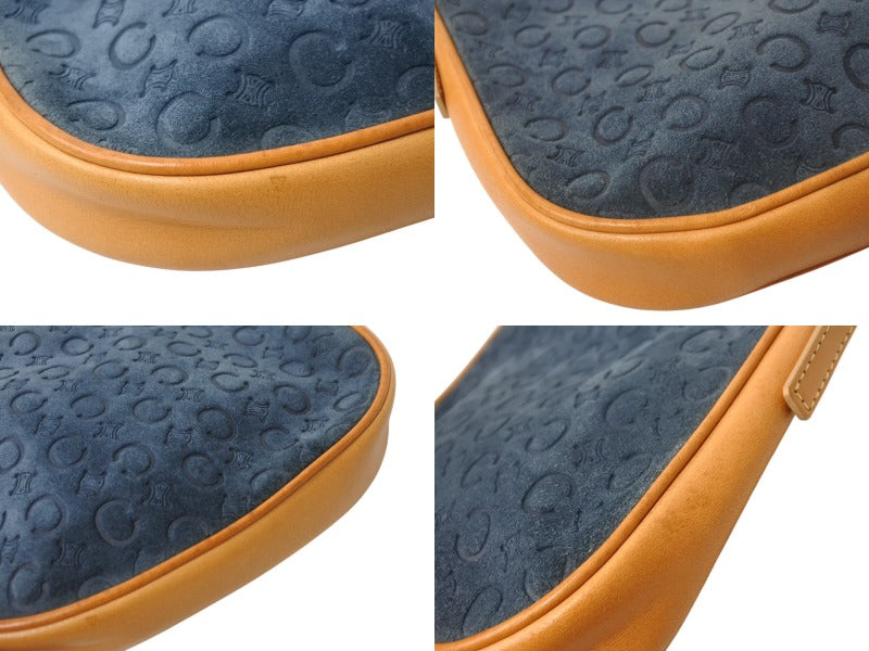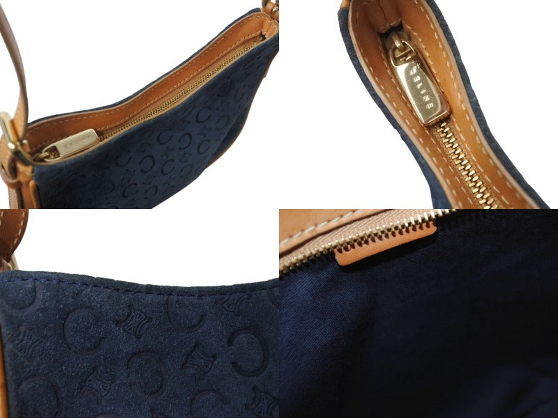 CELINE セリーヌ ワンショルダーバッグ CE00/12 マカダム スウェード レザー ネイビー ブラウン ゴールド金具 美品 中古 4b003572